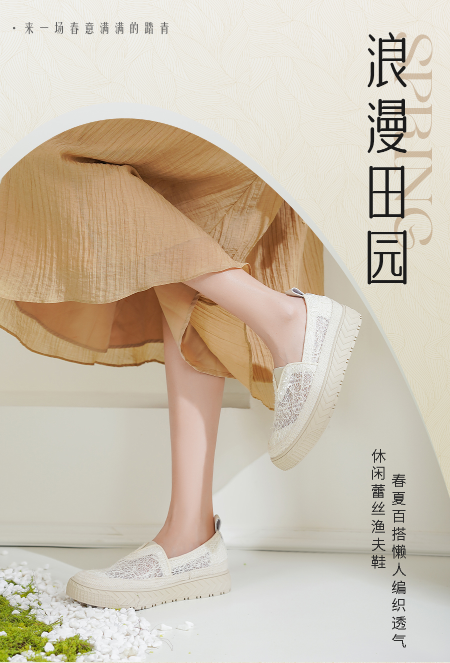 预售10天发|Safiya/索菲娅2025春夏百搭懒人编织透气休闲蕾丝渔夫鞋SFD1112193