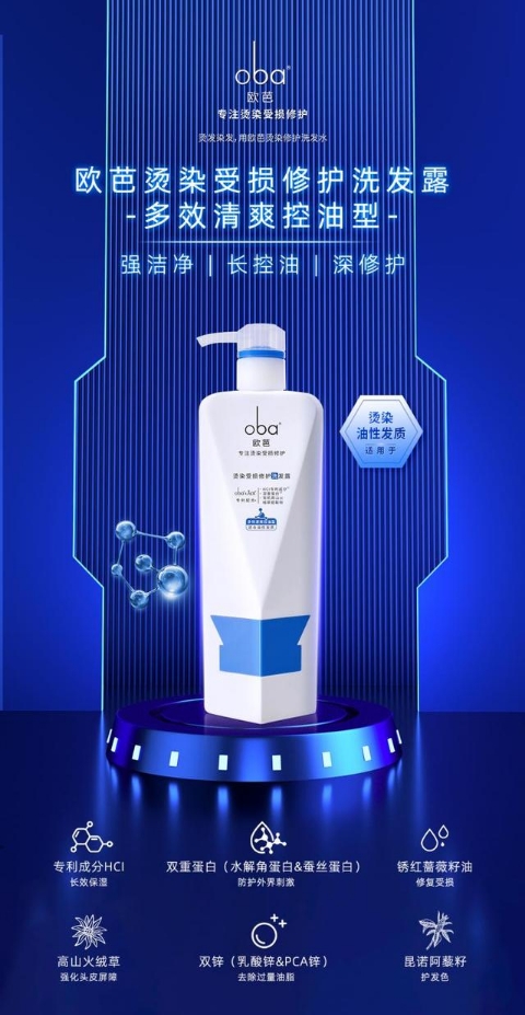 欧芭 烫染受损修护洗发露-多效清爽控油型500g