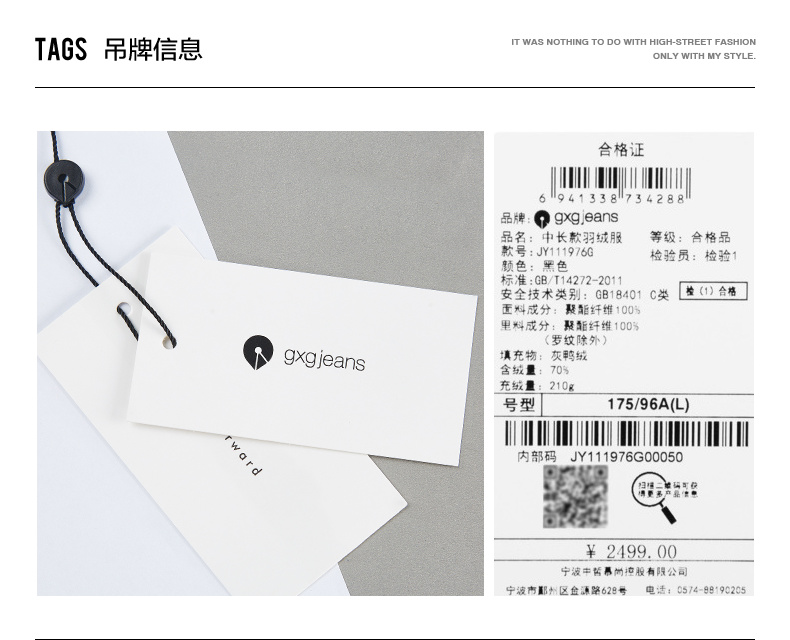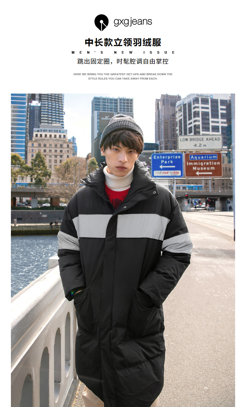 gxg.jeans男装保暖加厚羽绒服 外套休闲工装撞色中长款时尚羽绒服