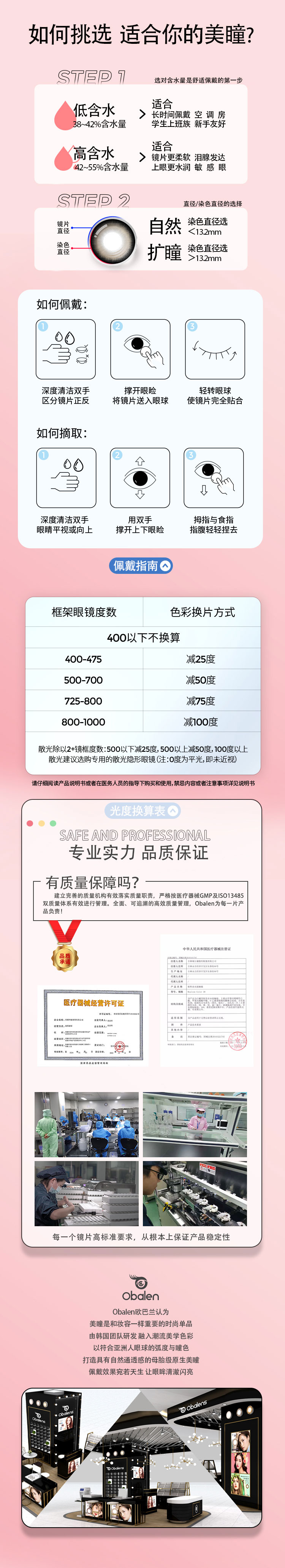 【森系少女日抛合集】Obalen欧巴兰经典百搭自然美瞳网红款非离子隐形近视眼镜10片装