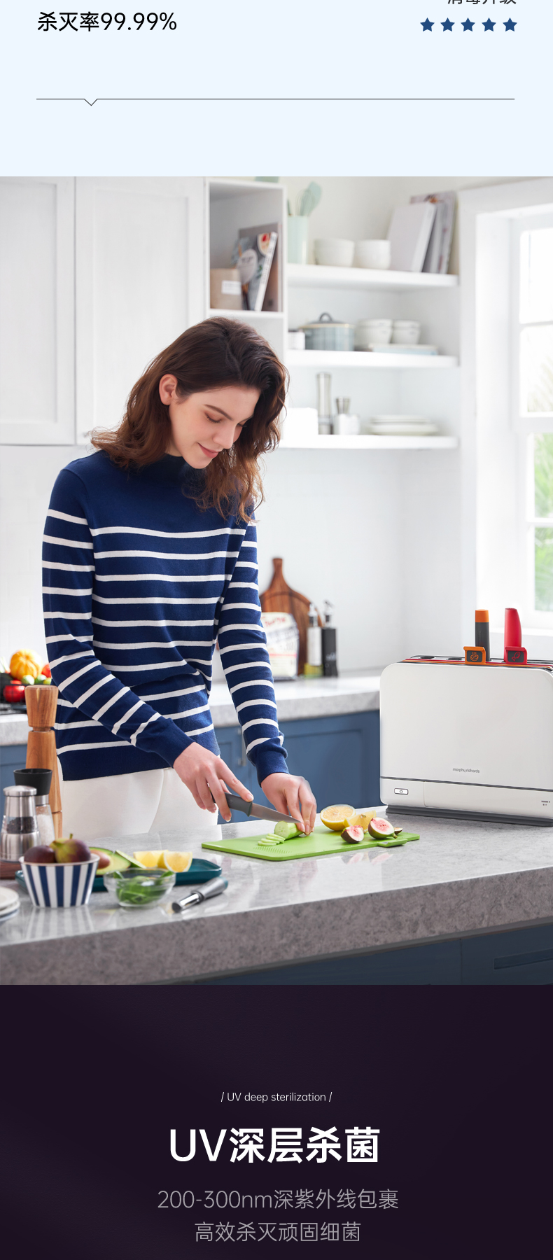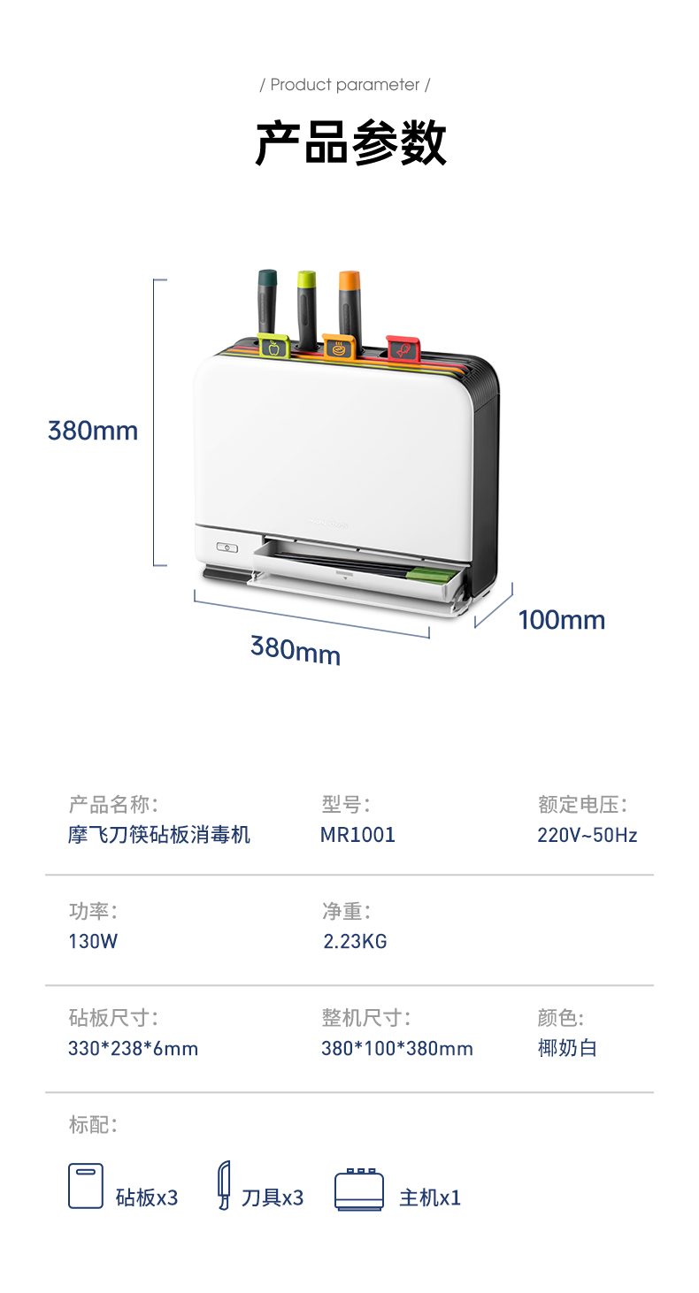 摩飞电器(Morphyrichards)消毒刀架砧板刀具消毒机家用小型筷子筒紫外线消毒机烘干器 菜板分类厨具MR1001
