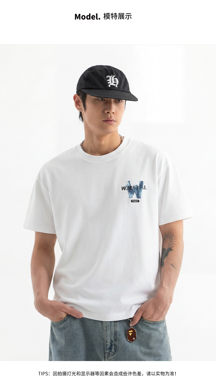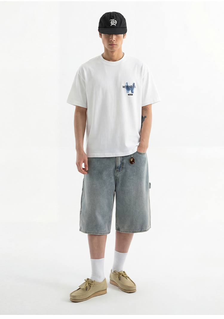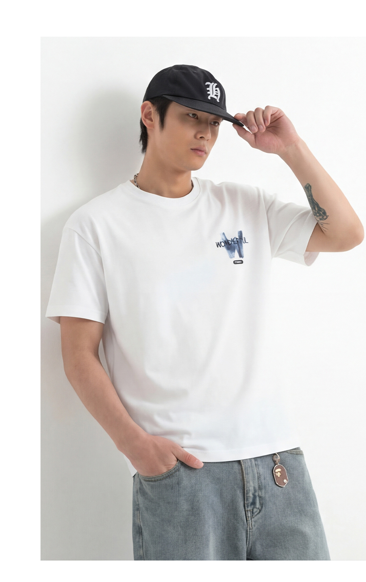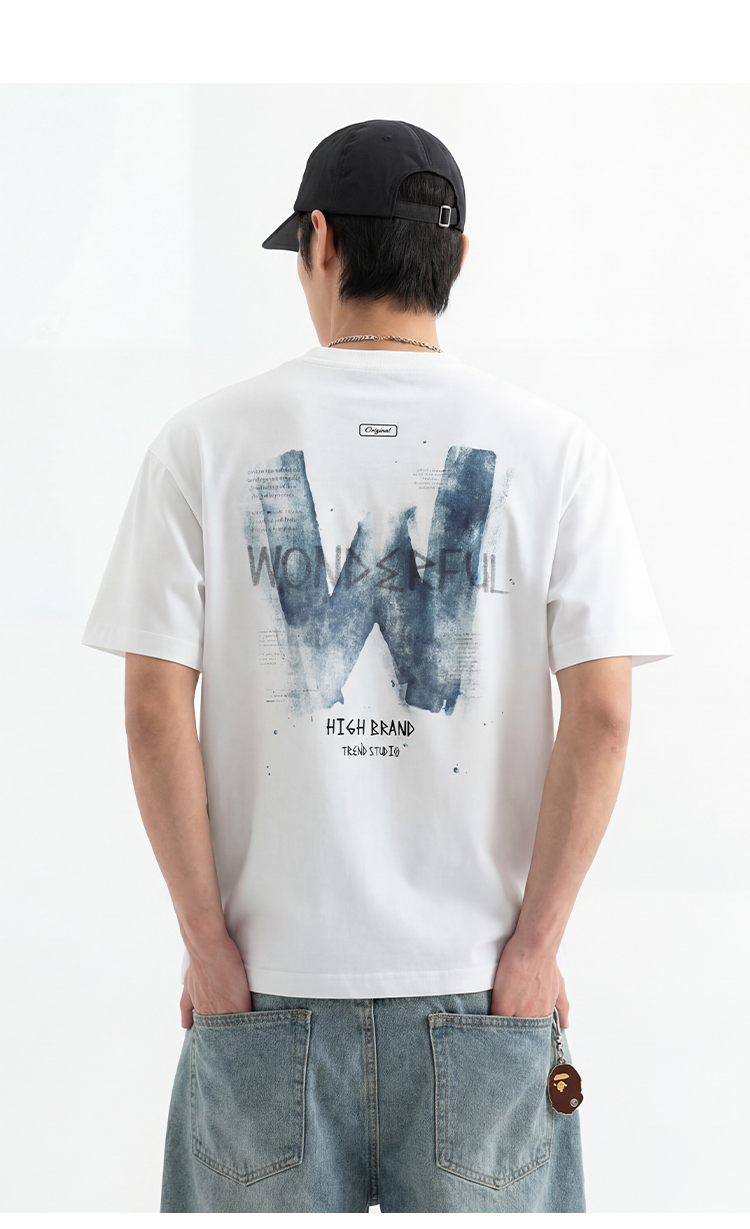 DRONKOO 2026 圆领左胸后幅绣字母刷印W短袖T恤