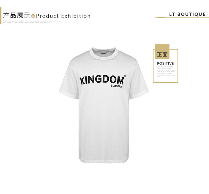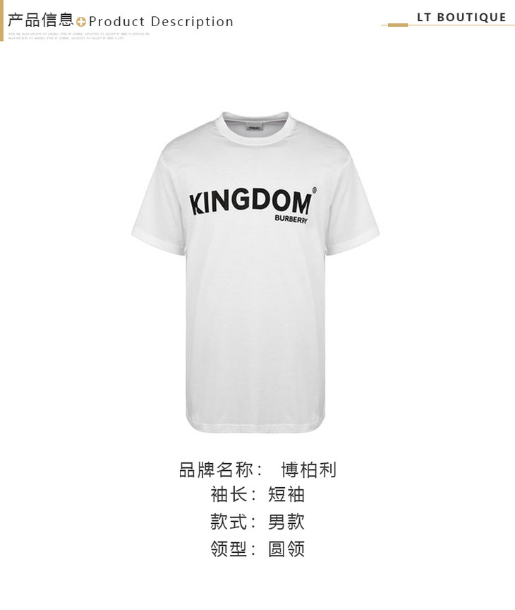 BURBERRY 巴宝莉 男士字母徽标印花棉质宽松圆领短袖T恤 白色 8010438 A1464