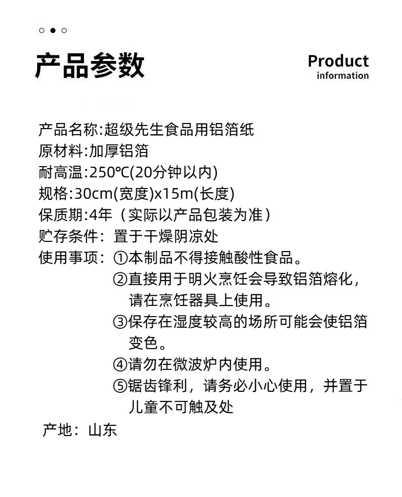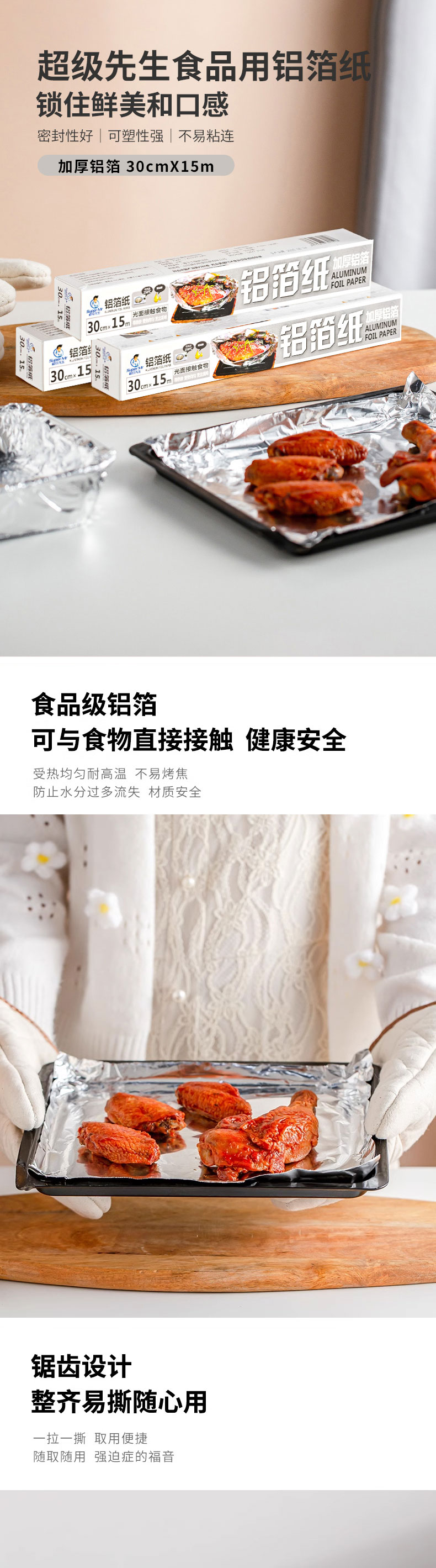超级先生食品用铝箔纸30cm宽×15m长