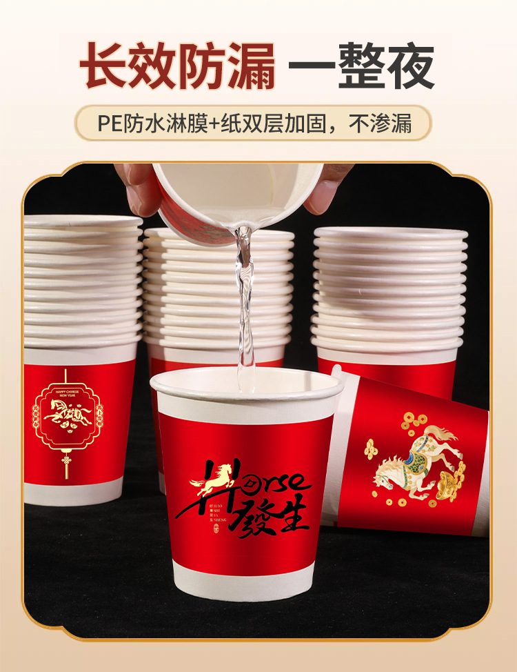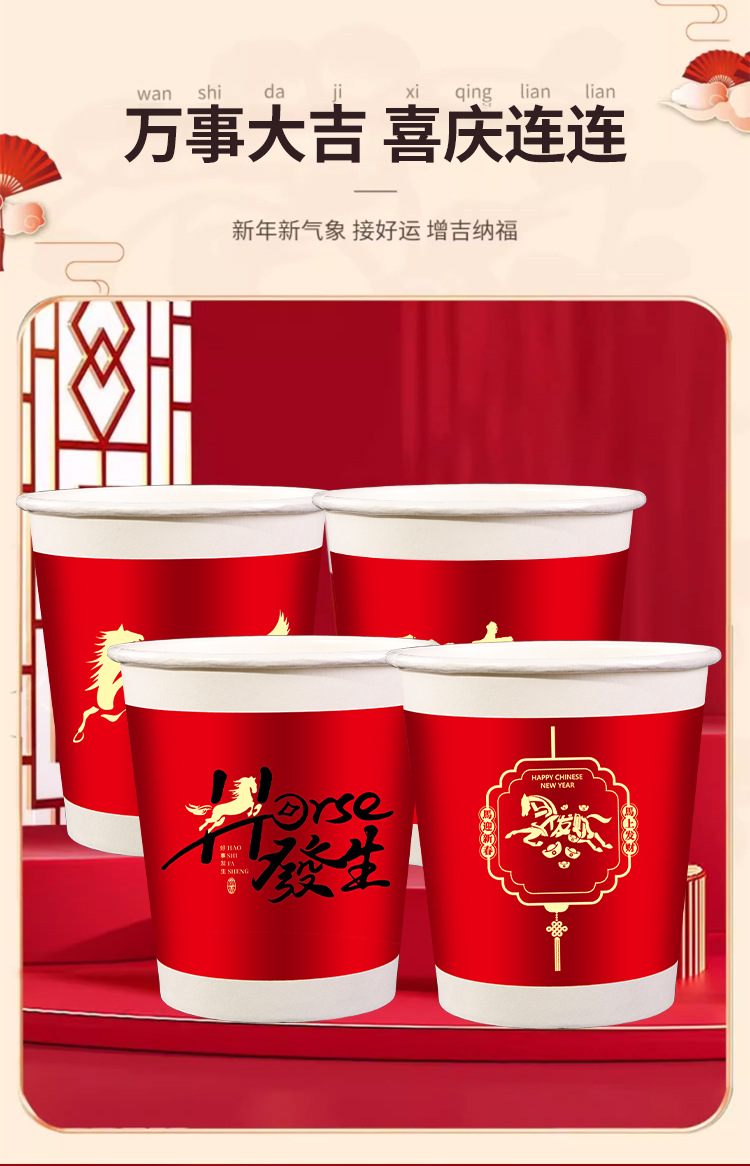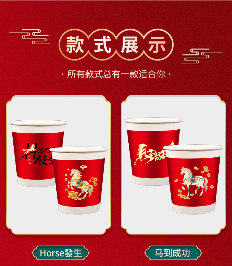 「50只/包!买2送1」马年新款纸杯50只装纸杯喜庆一次性杯家用餐饮用具加厚水杯家用新年贺岁 商品图0