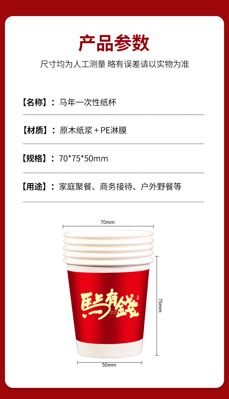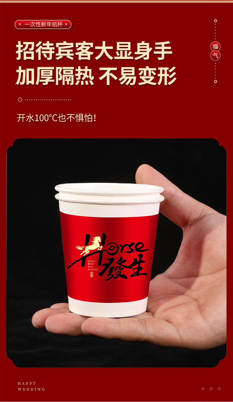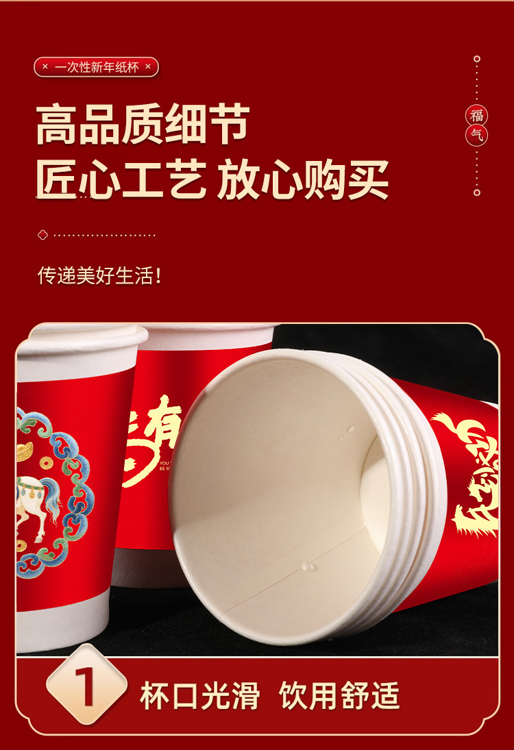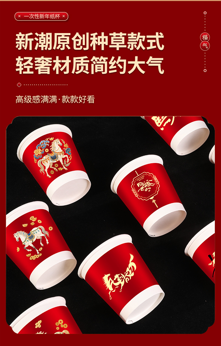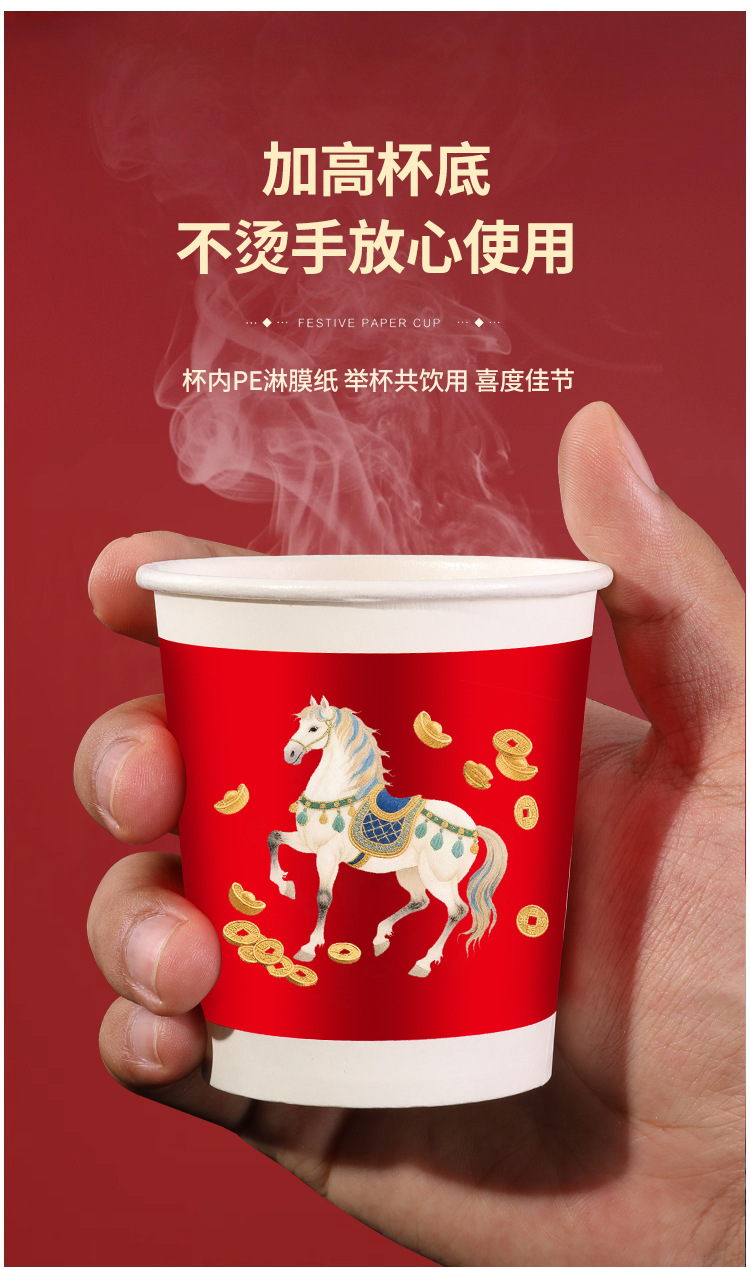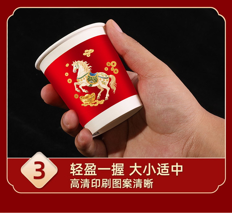 「50只/包!买2送1」马年新款纸杯50只装纸杯喜庆一次性杯家用餐饮用具加厚水杯家用新年贺岁 商品图3