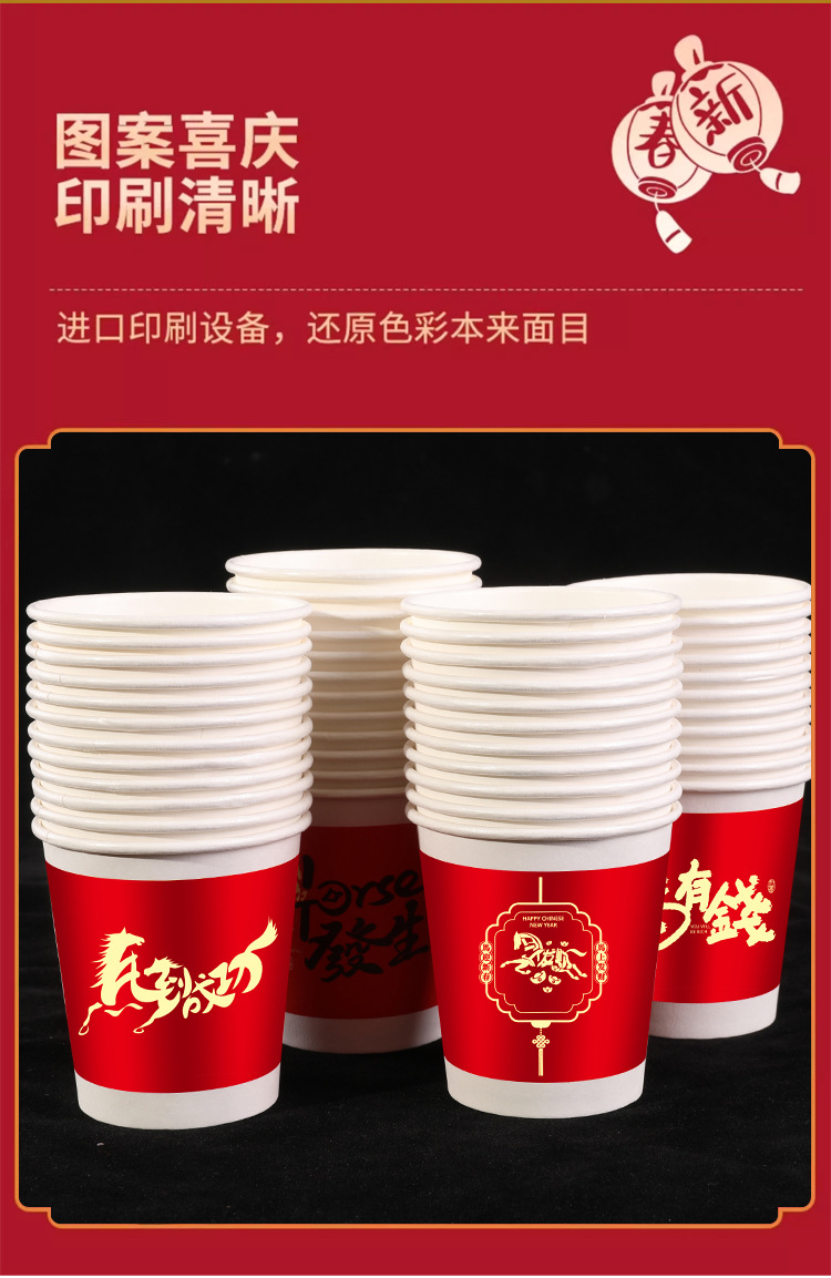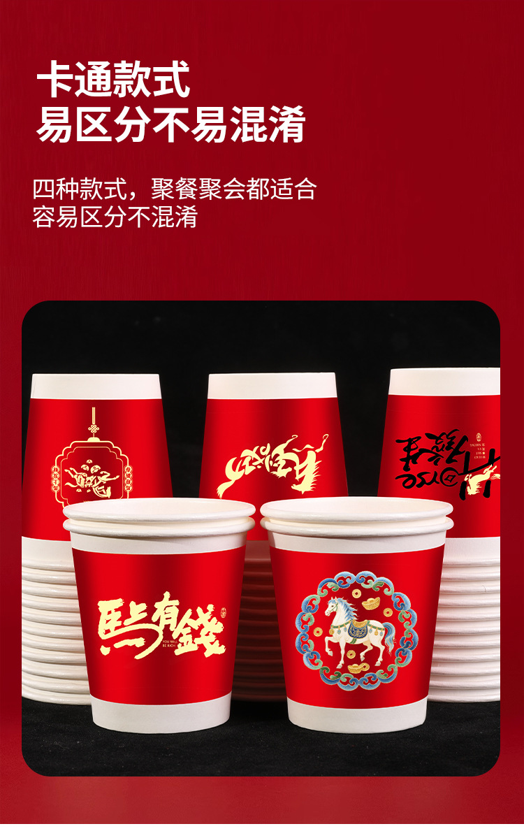 「50只/包!买2送1」马年新款纸杯50只装纸杯喜庆一次性杯家用餐饮用具加厚水杯家用新年贺岁 商品图2