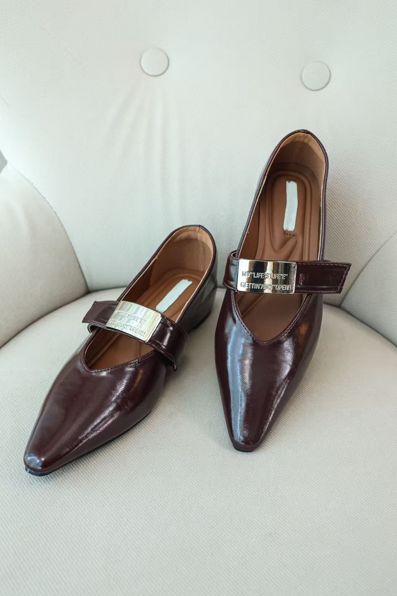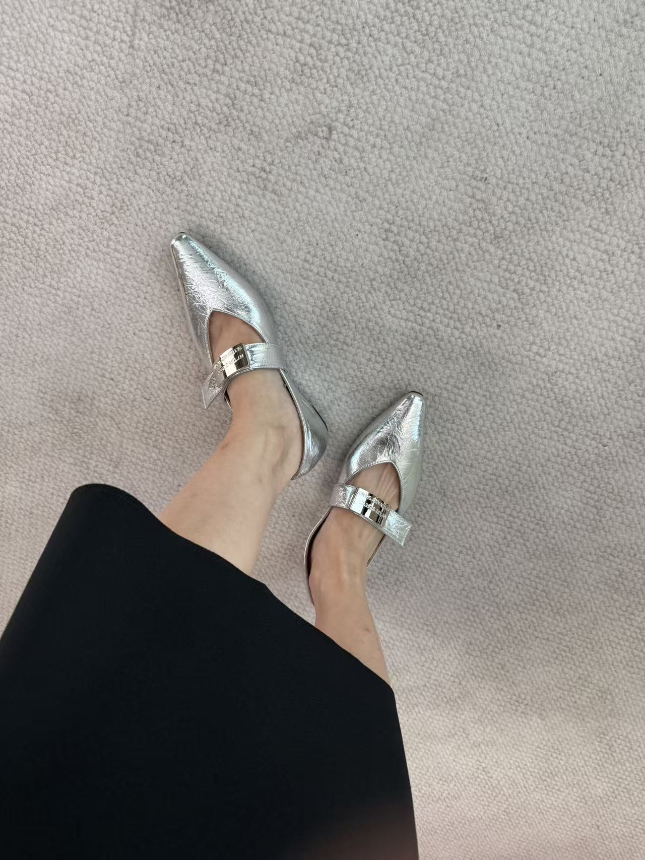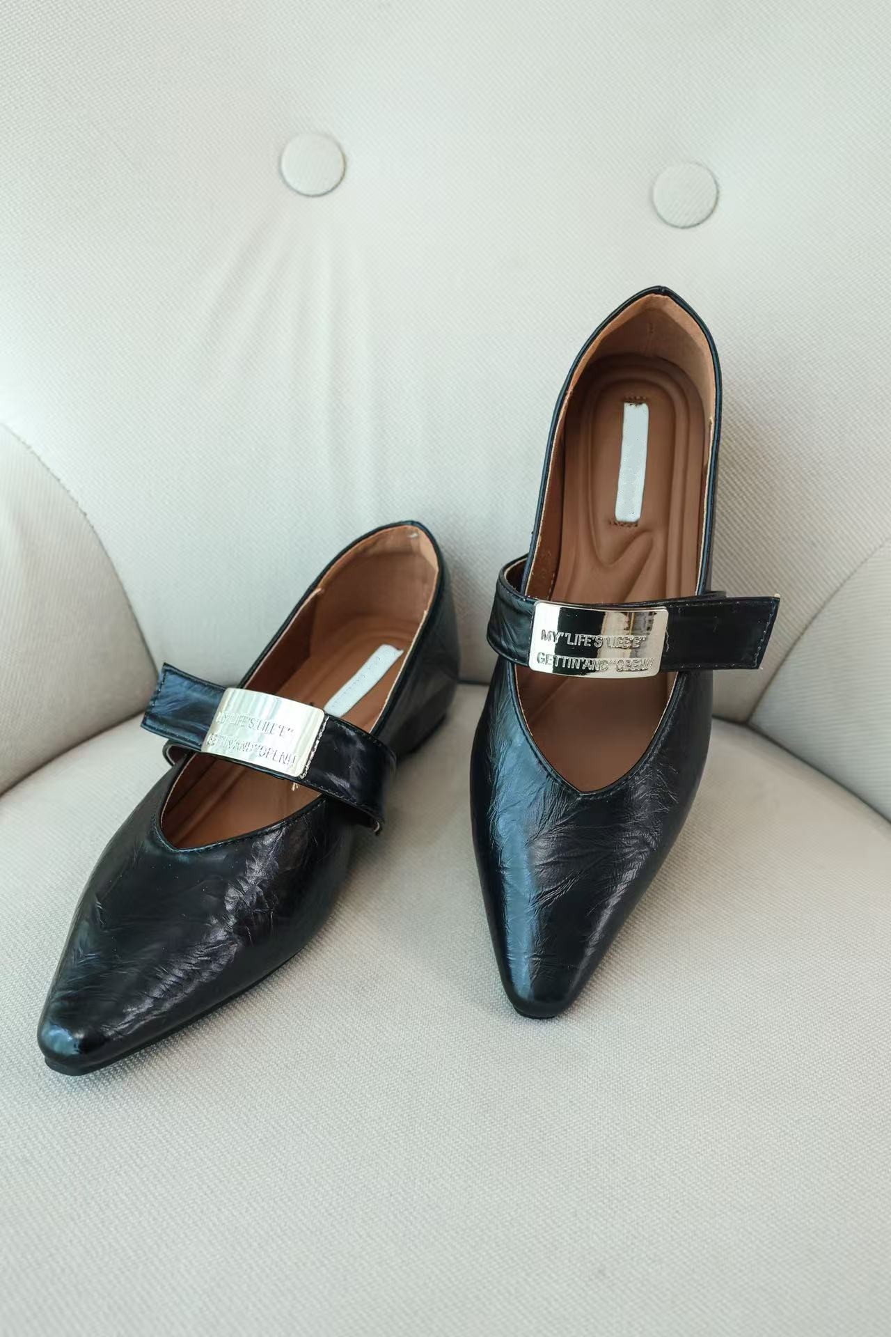 时髦尖子|法式真皮内增高金属扣单鞋
