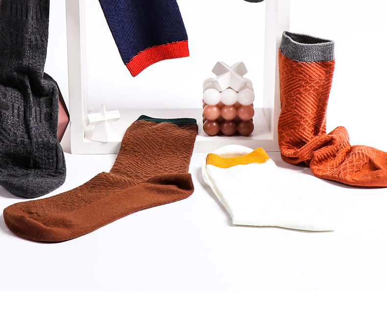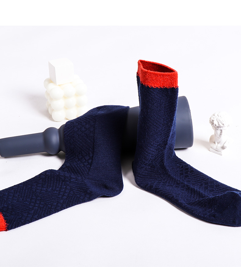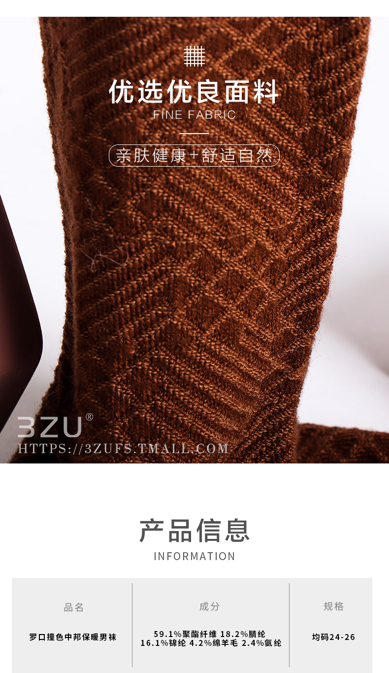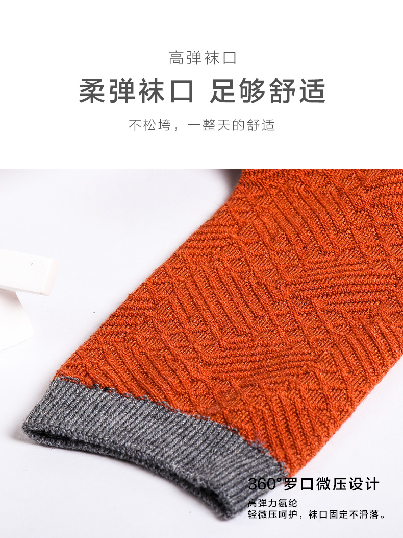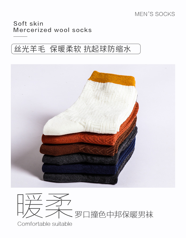 【任选6双99.5】春季男款秋冬中筒丝光羊毛冬季保暖撞色横杠提花中邦保暖男袜子