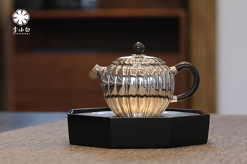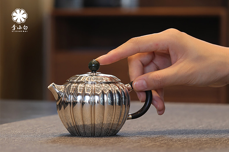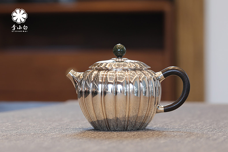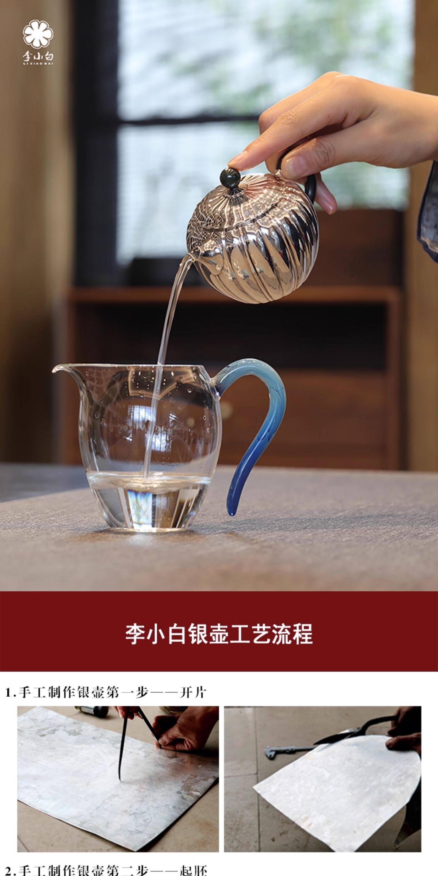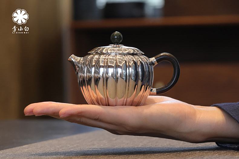 李小白银壶 纯银9999泡茶银壶 菊瓣泡壶 纯银泡茶壶 泡茶银壶 烧水银壶