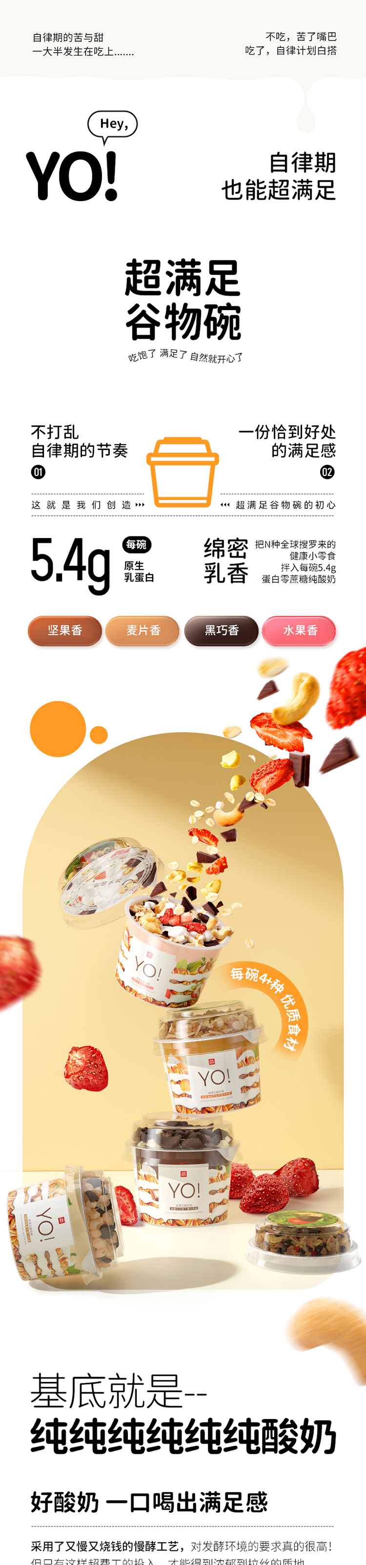 【乐纯】纯净超满足谷物碗低温酸奶燕麦代餐135g+15g