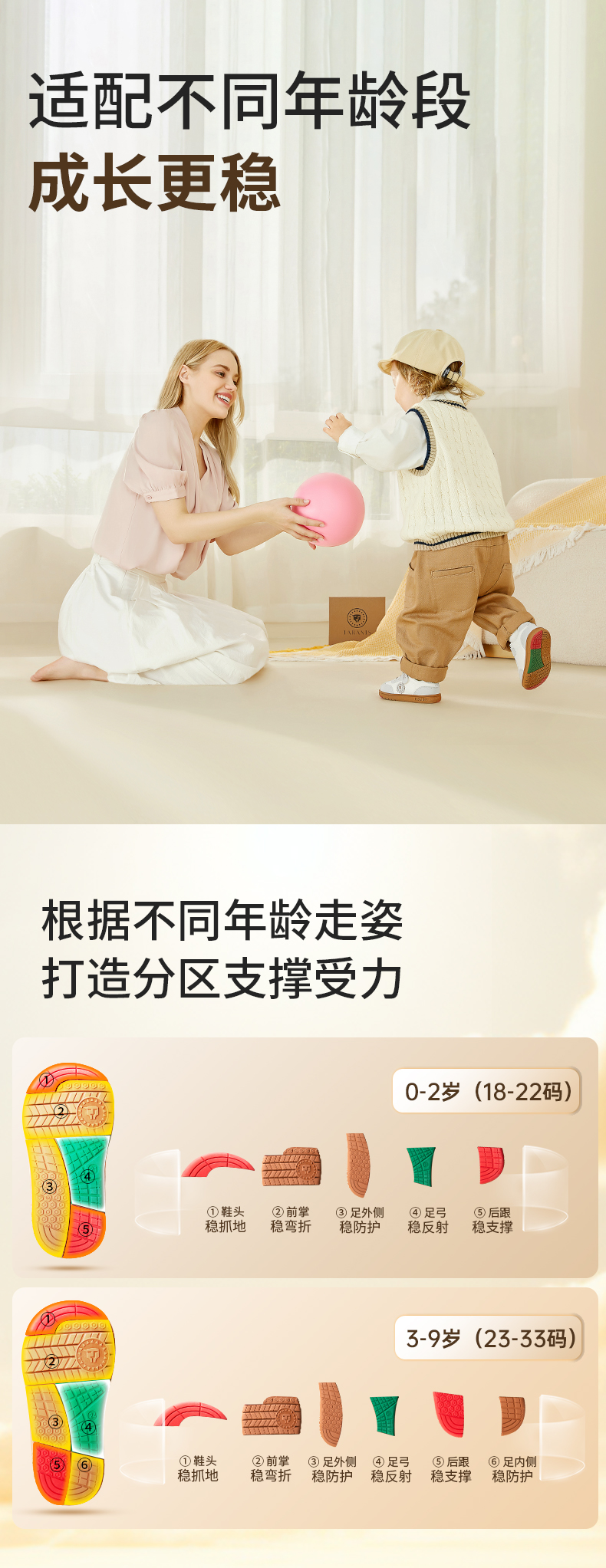 泰兰尼斯稳稳鞋男宝宝秋季新款童鞋多密度鞋底防滑机能鞋学步鞋女 T02B3C1588