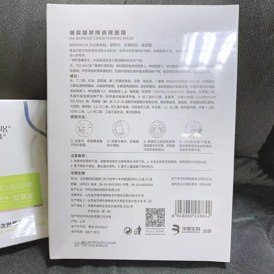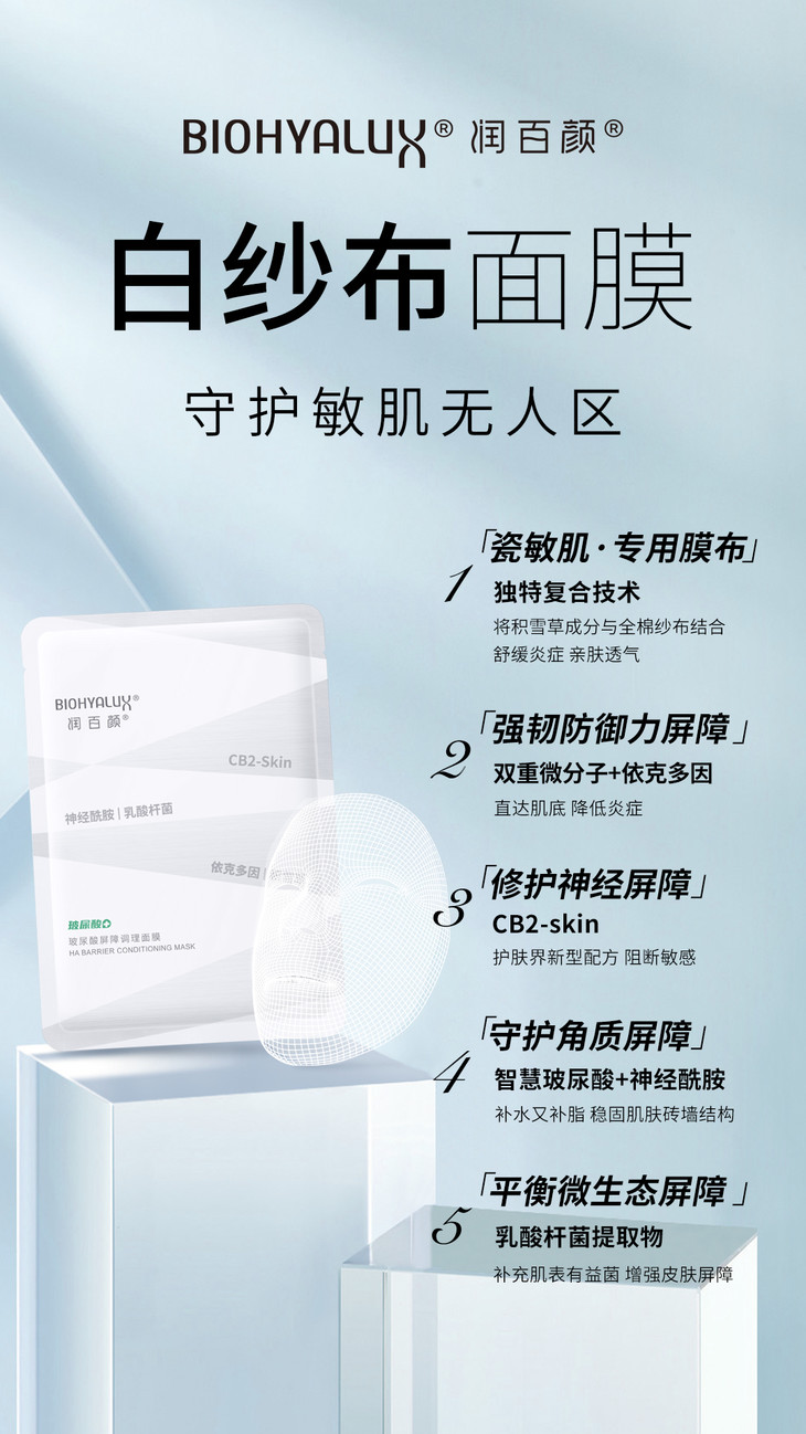国货!买两盒送次抛!华熙生物润百颜白纱布屏障调理面膜5片盒