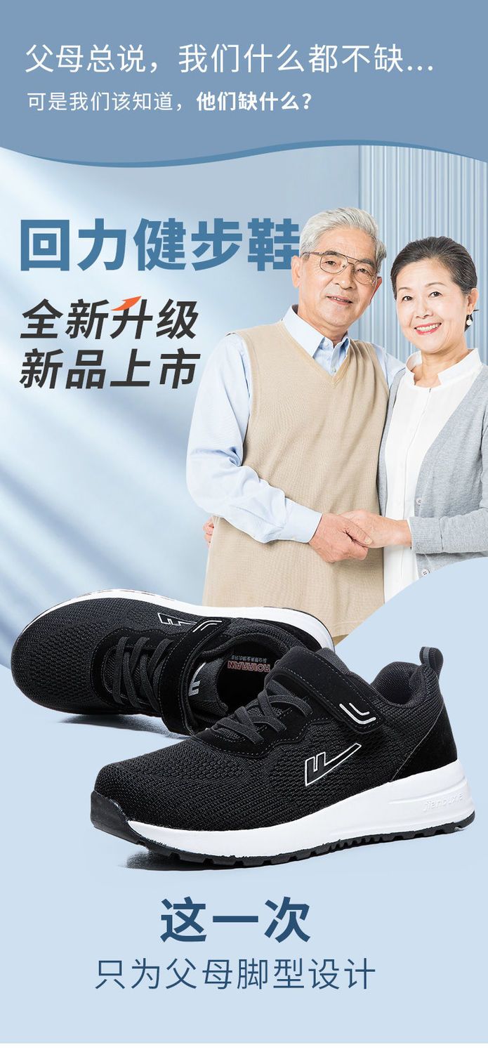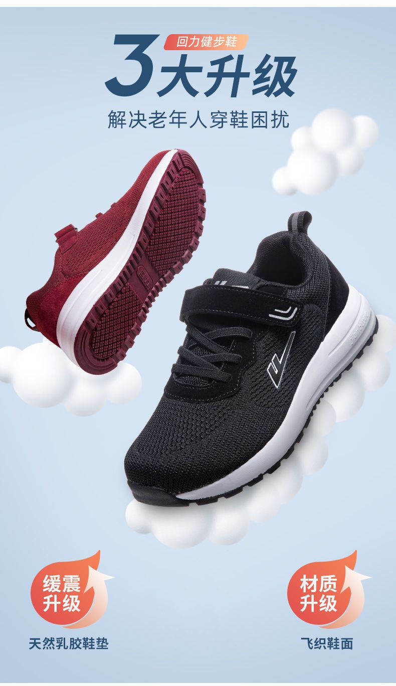 回力老人鞋男女秋季透气网面百搭健步鞋舒适软底中老年休闲运动鞋