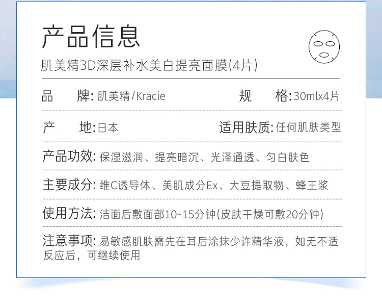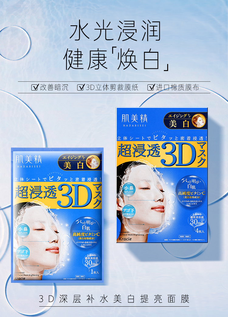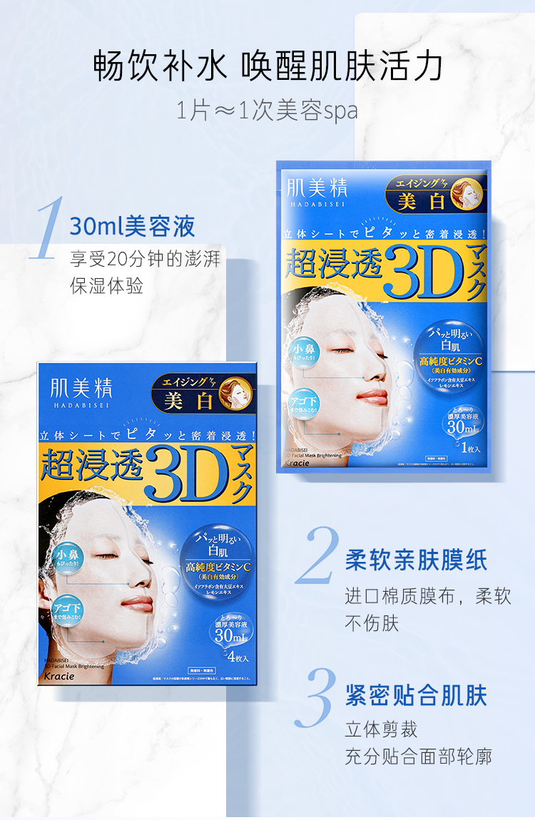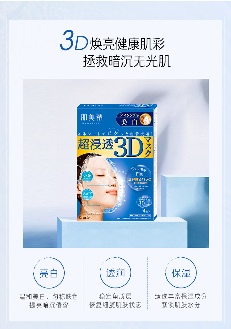 【保税仓】肌美精面膜3D款焕白亮肌4片装蓝盒