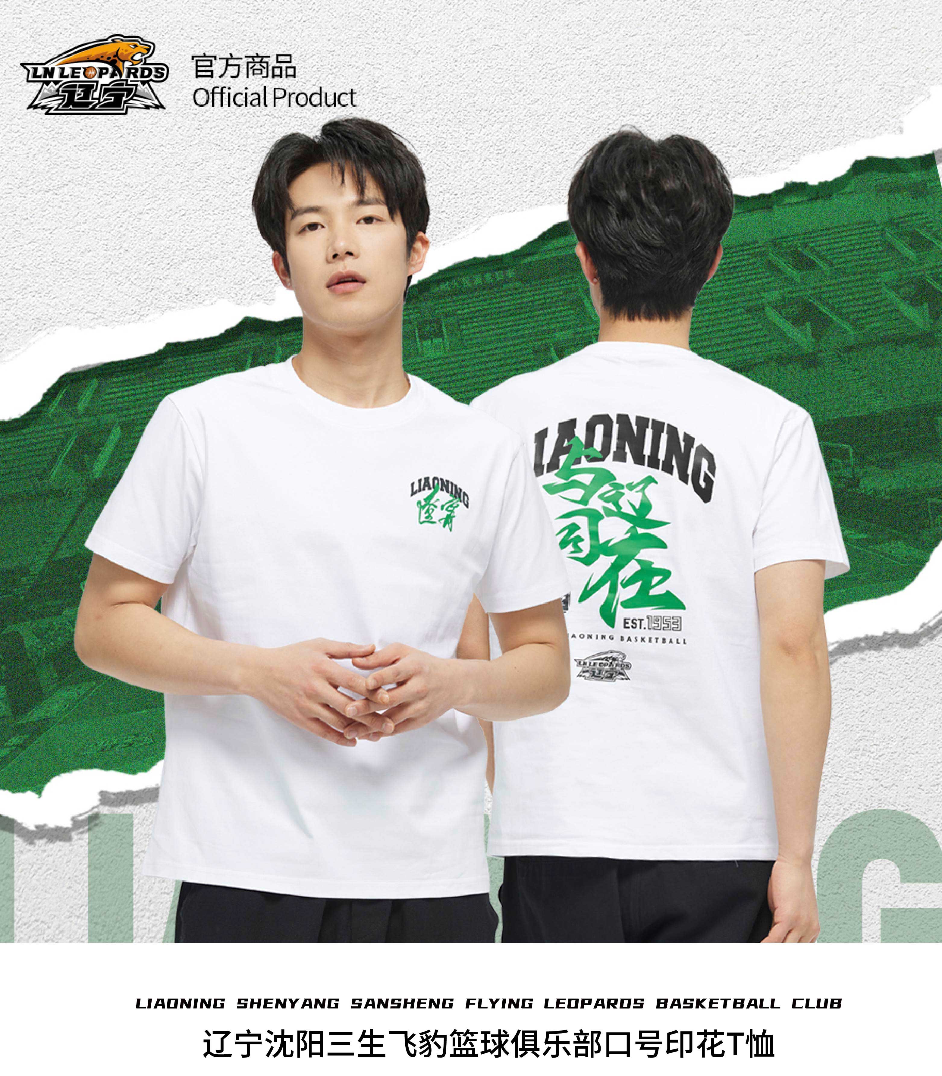 【官方正版】辽宁飞豹男篮|“与辽同在”口号助威T恤纪念短袖杨鸣