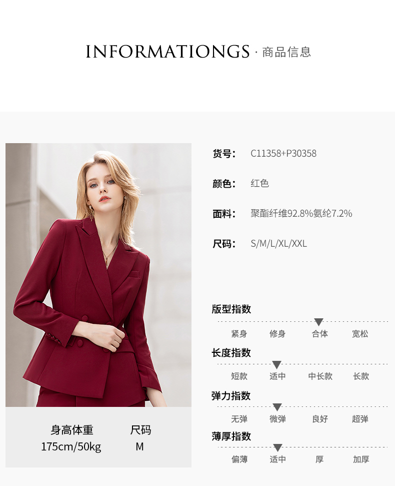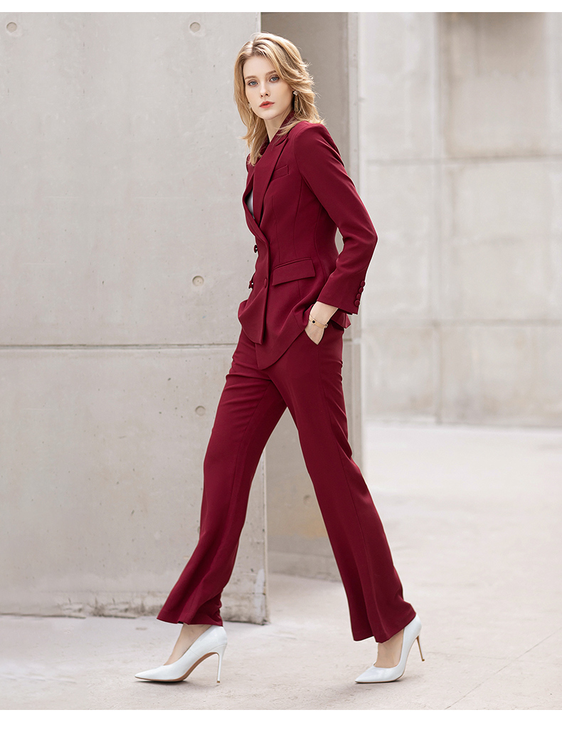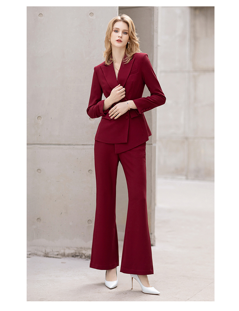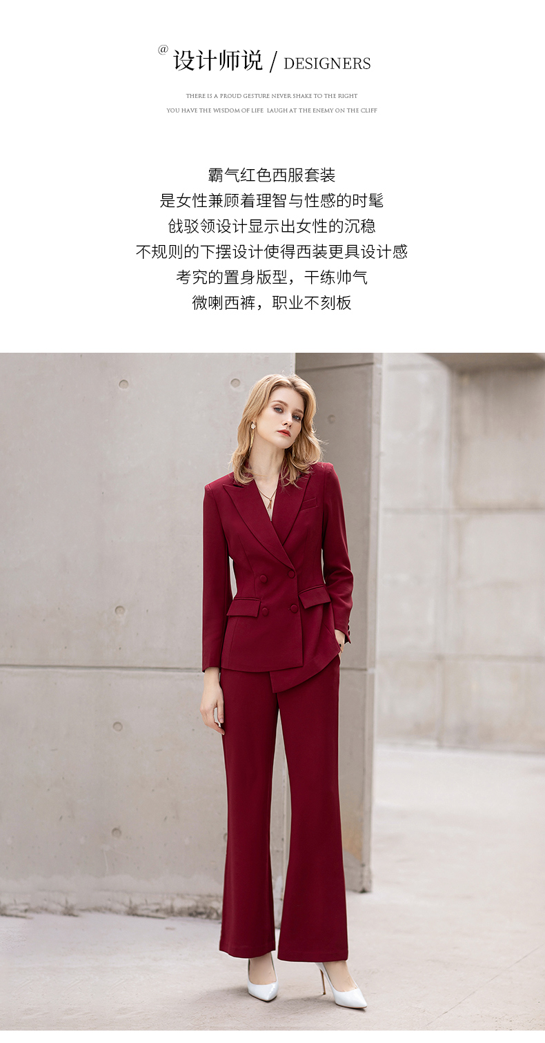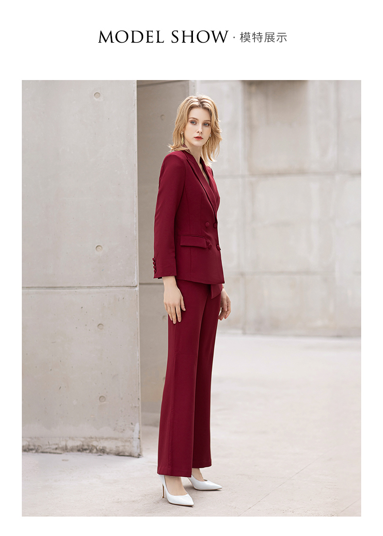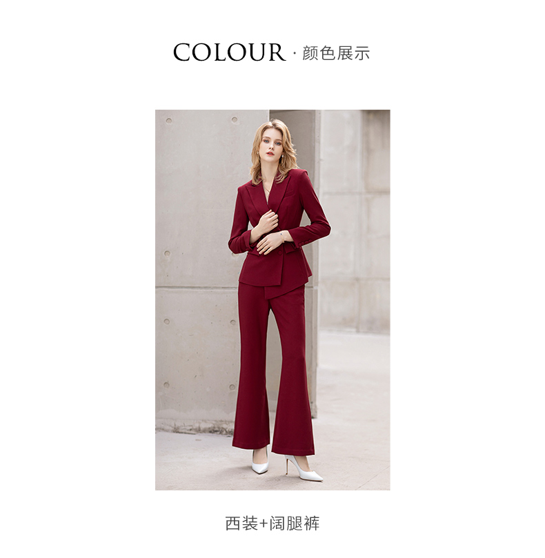 IWY/红色阔腿裤西装套装女士英伦风时尚干练总裁职业装主持人商务正装C11358+P30358