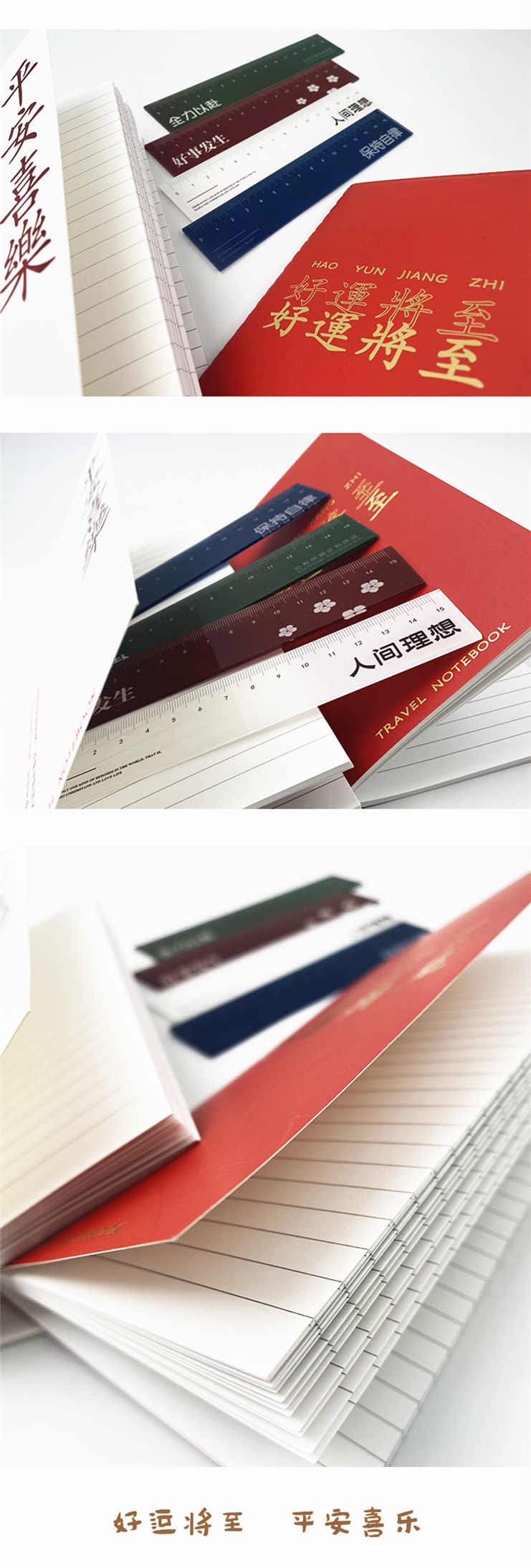 平安喜乐系列文创礼品便携记事本亚克力标尺刻度尺