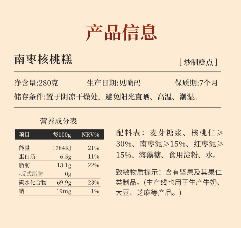 Rene Little Bear 香港小熊 南枣核桃糕 280g