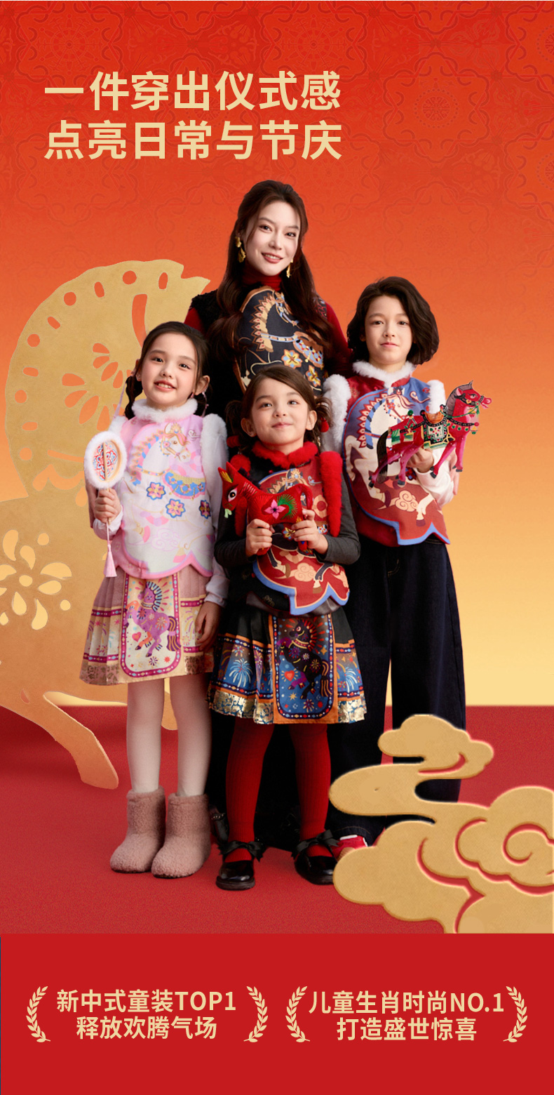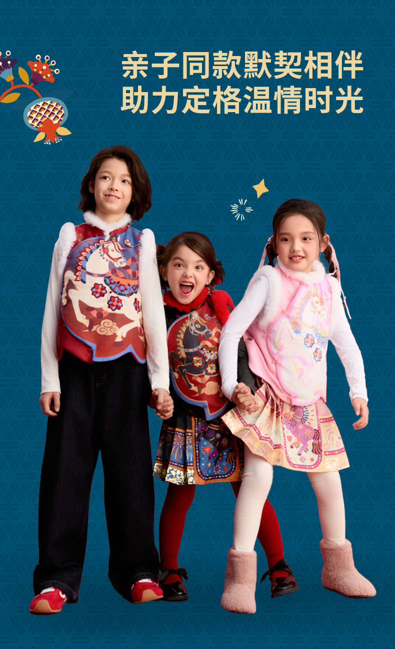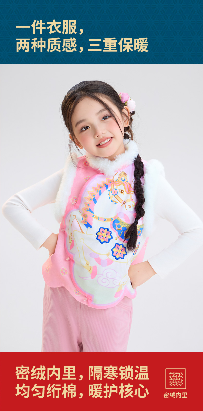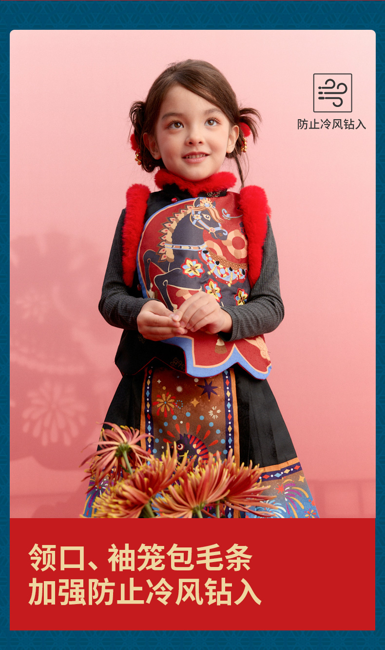 年衣童装儿童亲子款马甲冬季新品男女童中式唐装锦绣前程圆满马甲