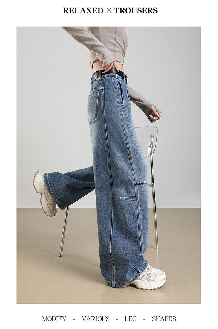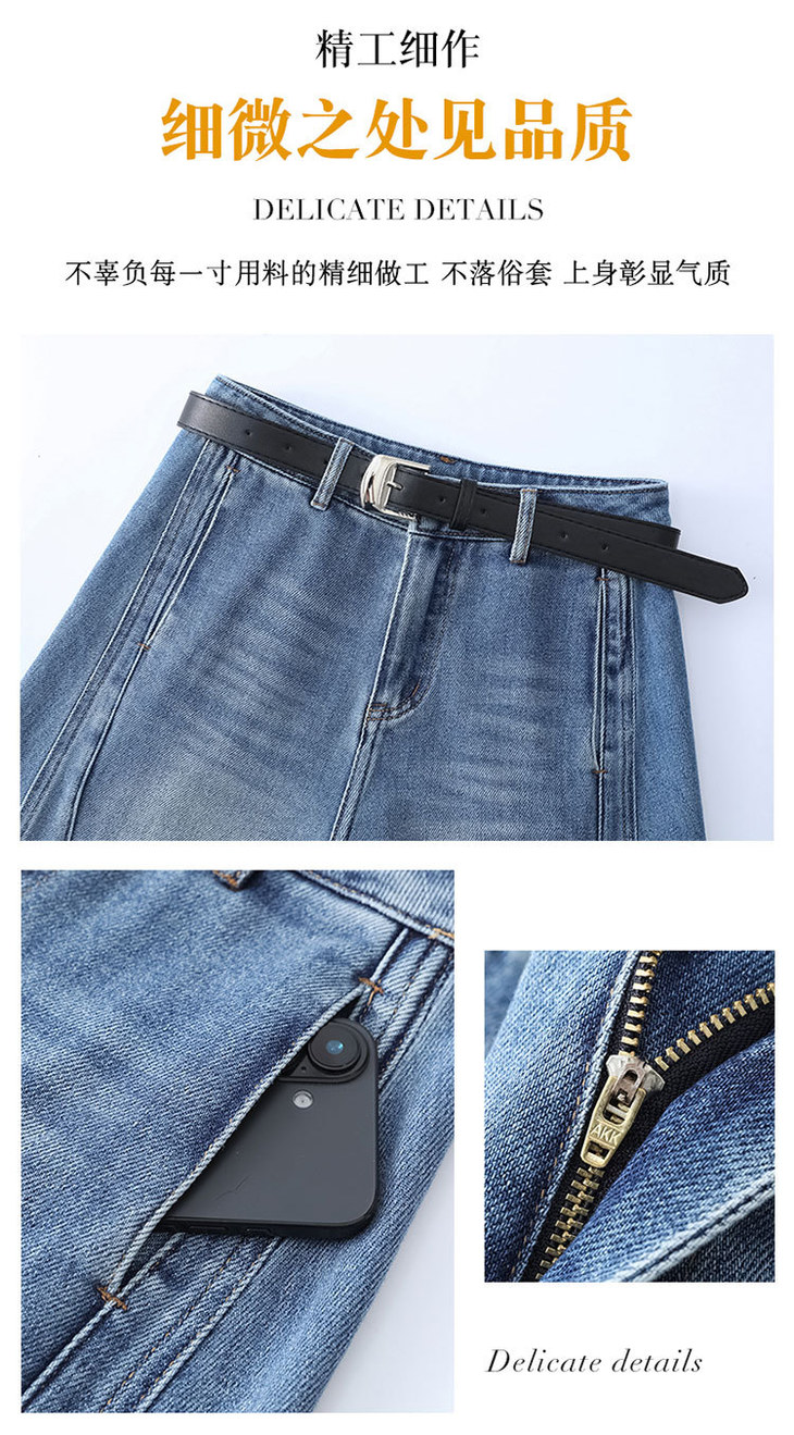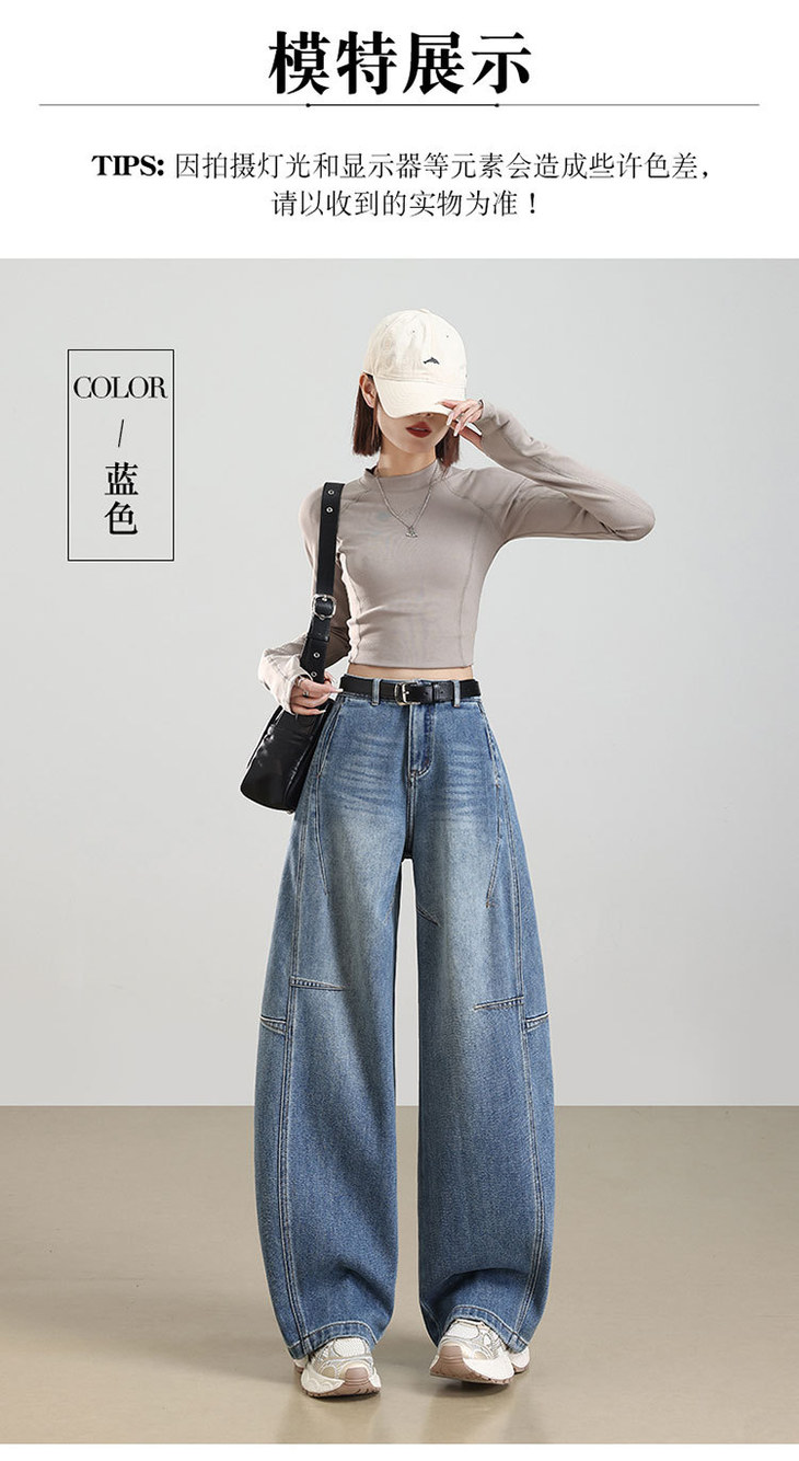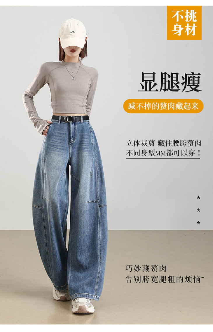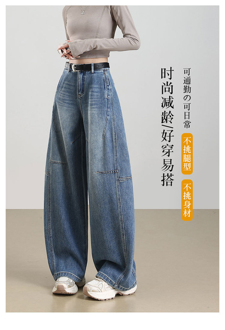 2026年春季新款蓝色牛仔弯刀裤,宽松显瘦阔腿裤高腰休闲拖地裤QYM2631