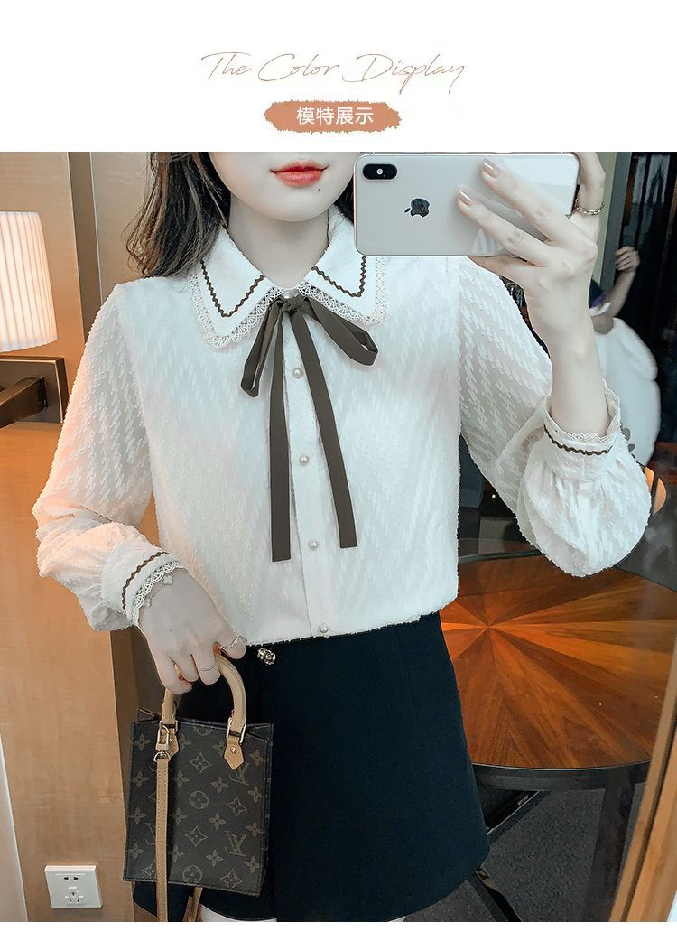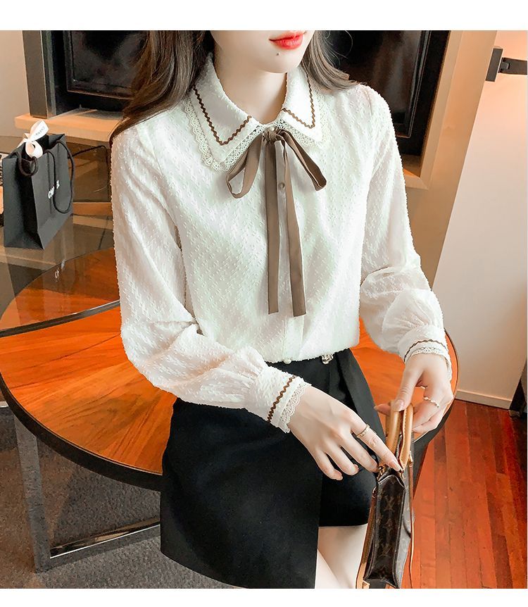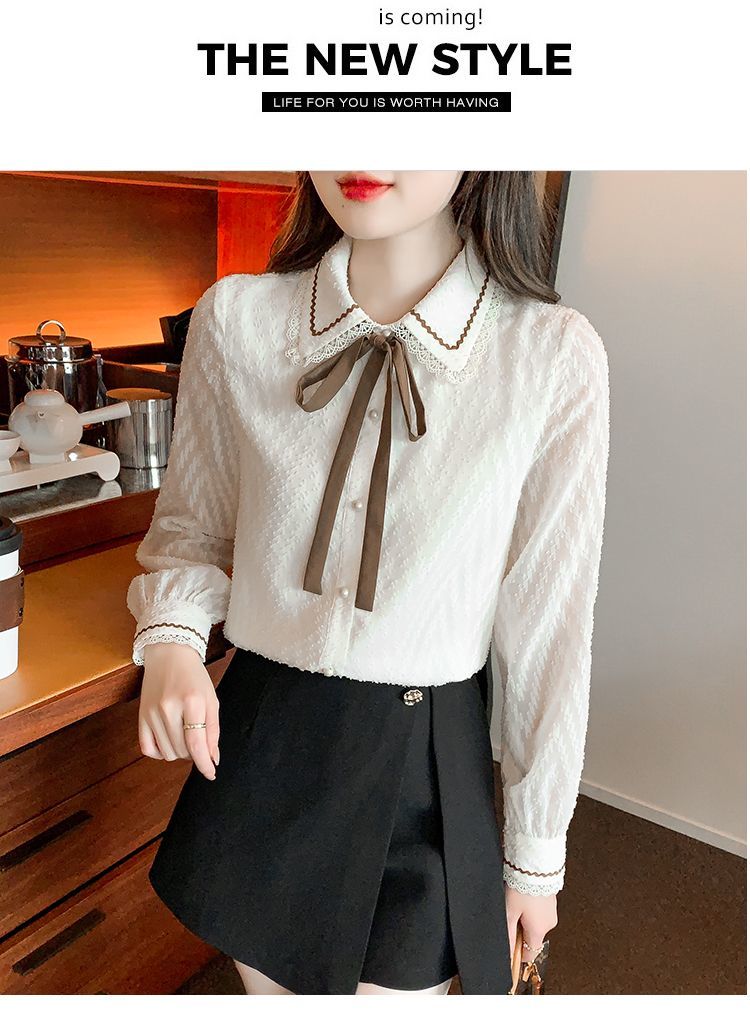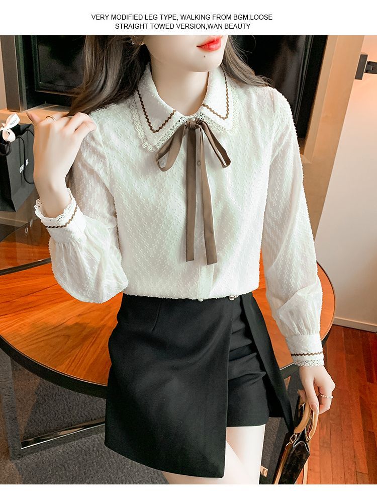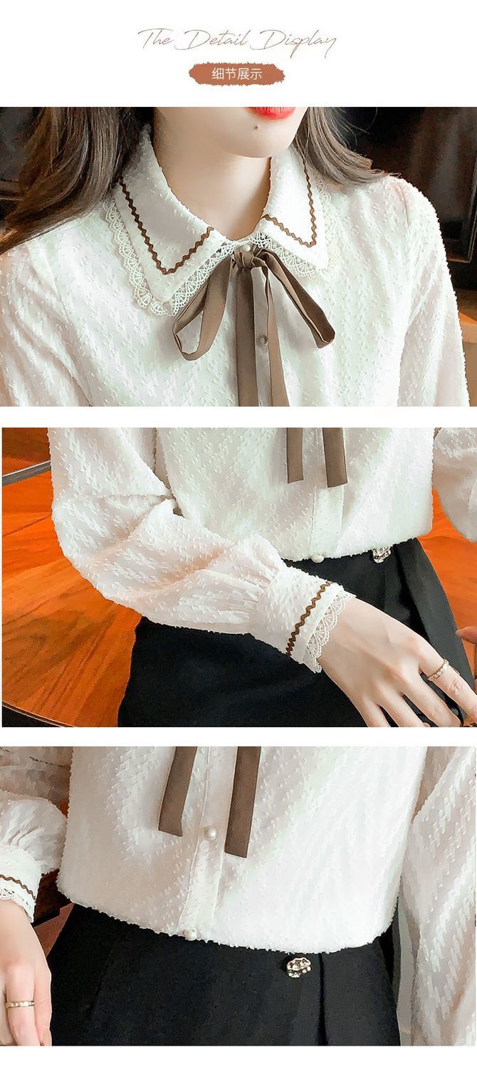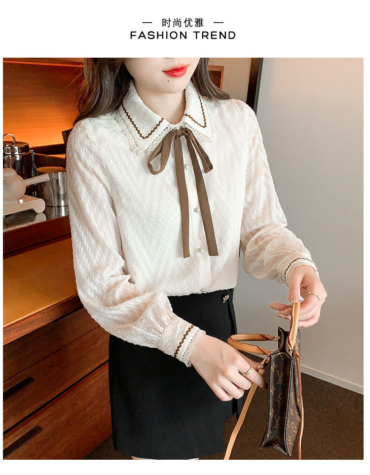 蝴蝶结蕾丝衬衫2023年新款洋气内搭打底衫减龄上衣AL