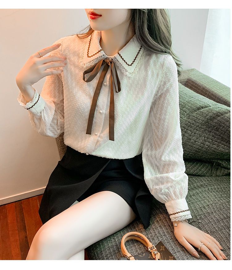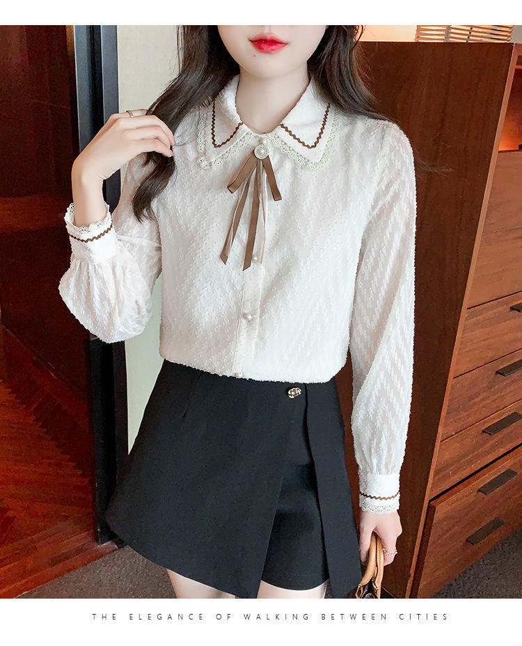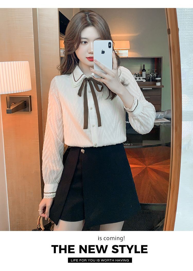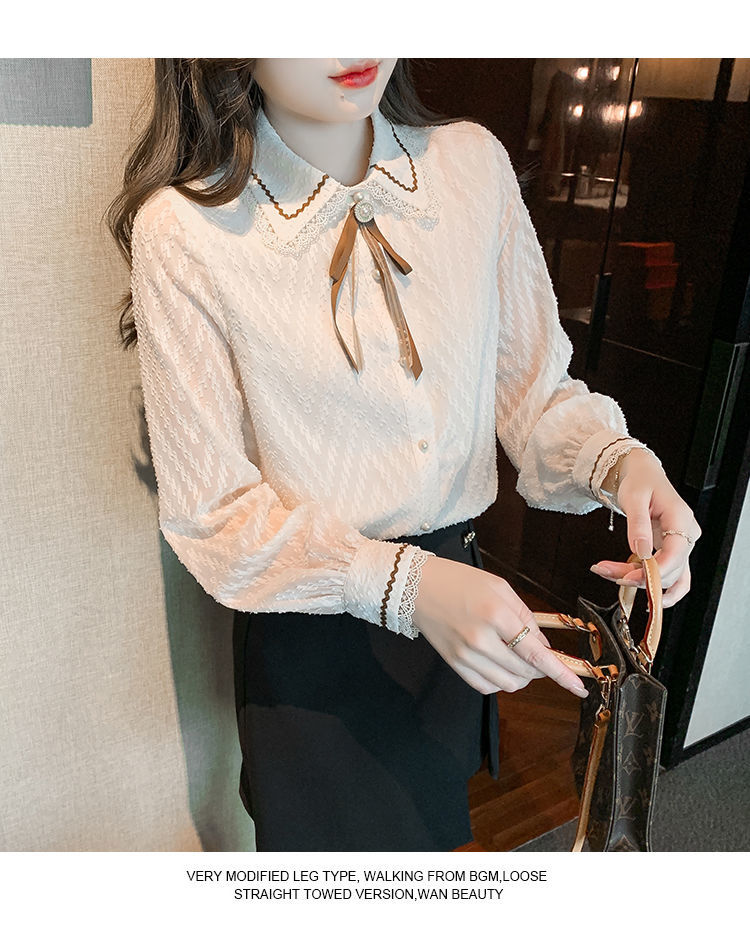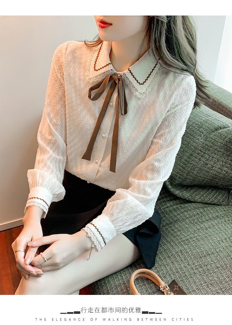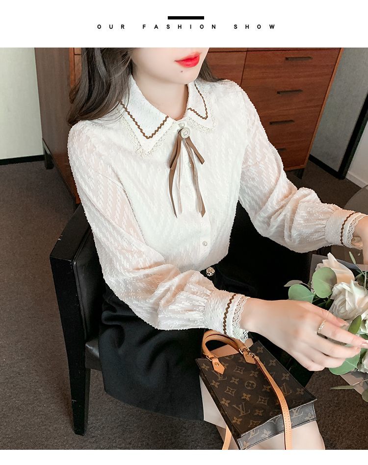 蝴蝶结蕾丝衬衫2023年新款洋气内搭打底衫减龄上衣AL