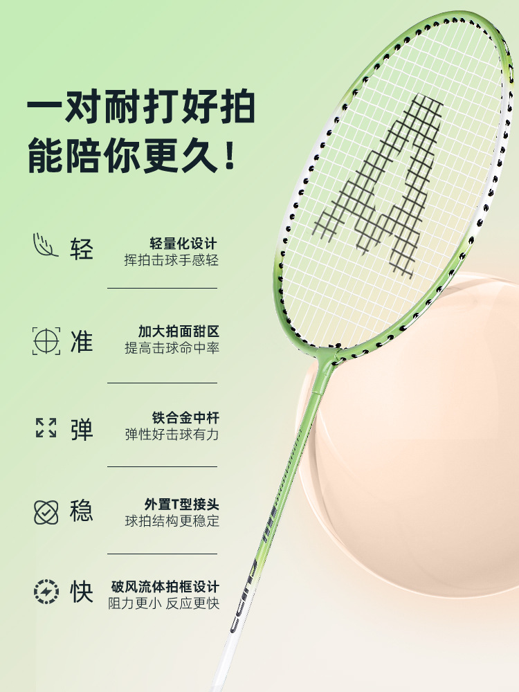 [小滋心选]【活动价 ¥59.9 ¥69.9】得力羽毛球拍 成人少年套装比赛训练双拍🏸【颜值佳轻手感🔥】得力羽毛球拍套装,超耐打,陪你每一场精彩对决✨