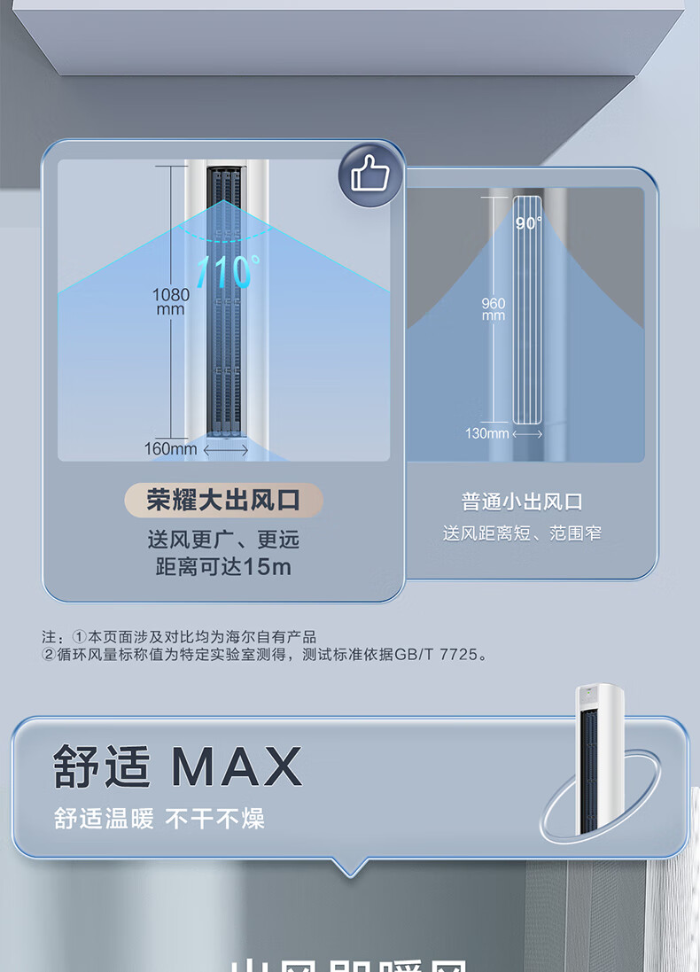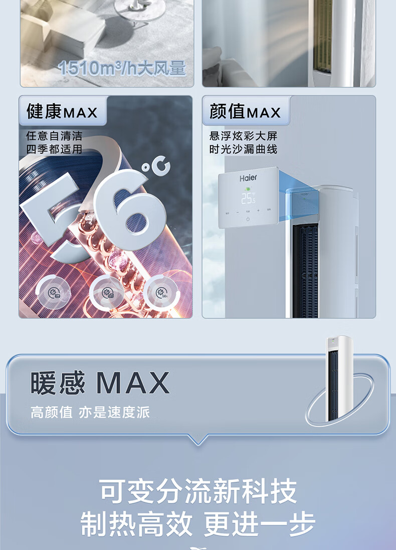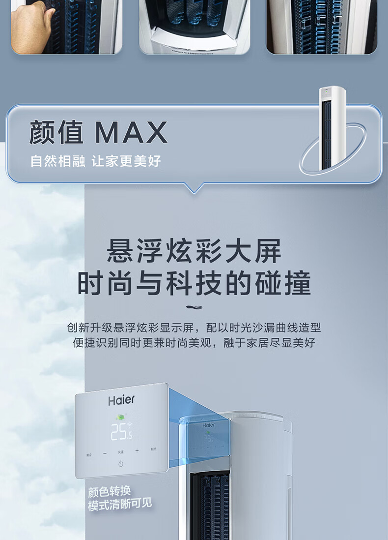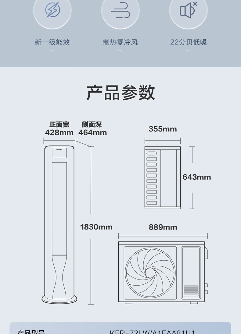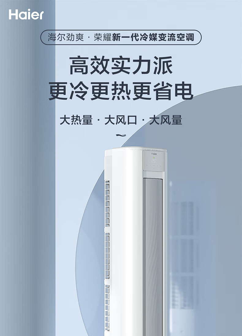 海尔(Haier)劲爽 荣耀 3匹新一级能效 变频 冷暖 自清洁 家用空调立式柜机 KFR-72LW/A1FAA81U1