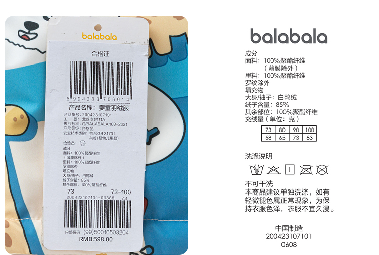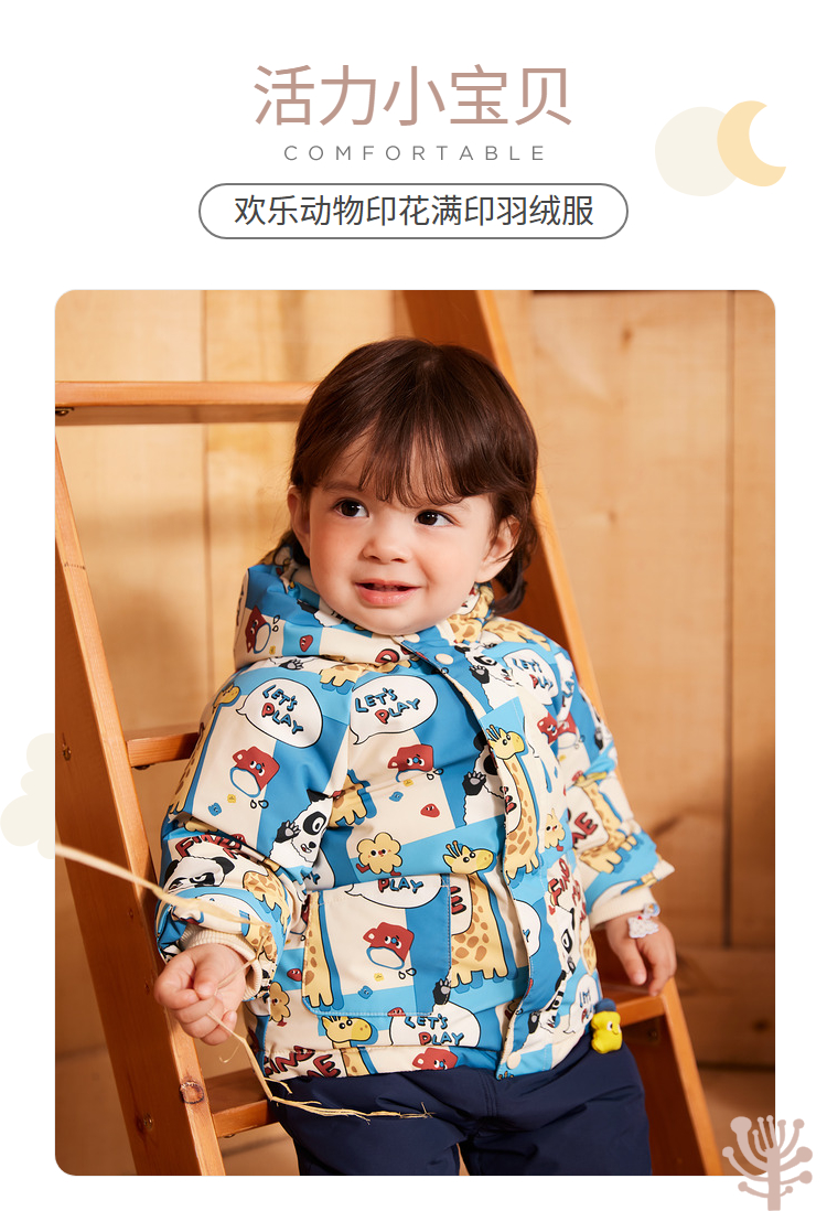 巴拉巴拉宝宝羽绒服男童童装婴儿秋冬外套保暖印花满印可爱萌趣潮
