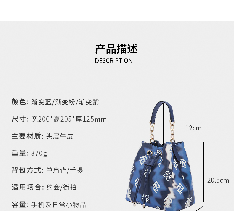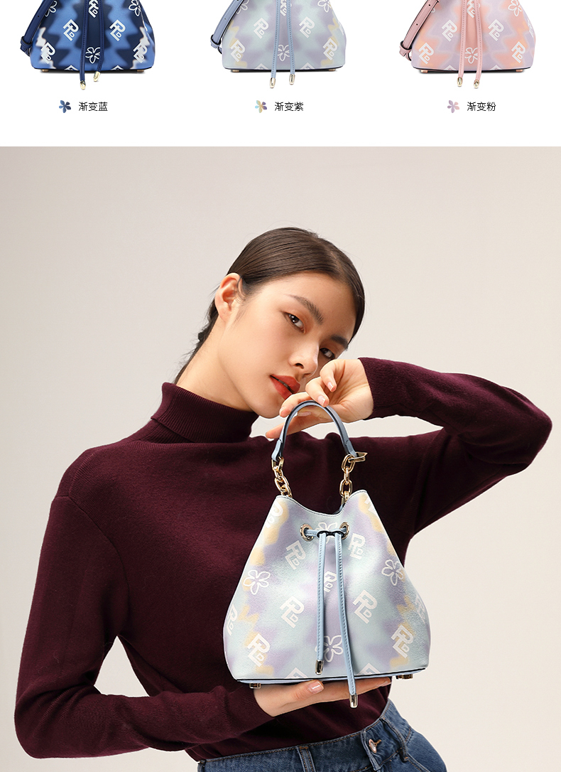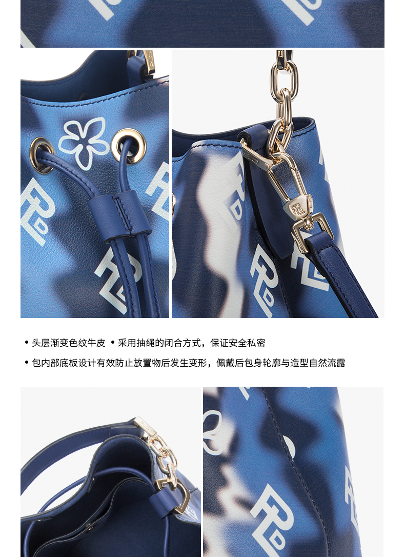 保兰德PLD东方雅奢头层牛皮水桶包大容量抽绳通勤手提斜挎单肩包体制内中国包