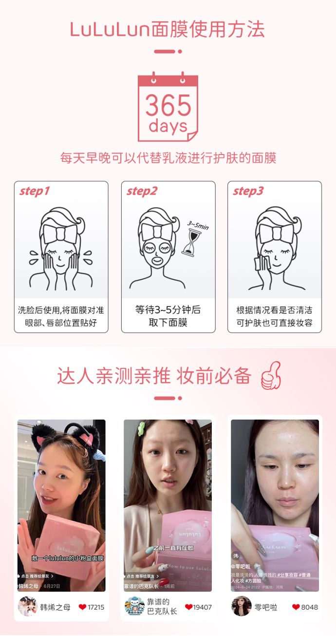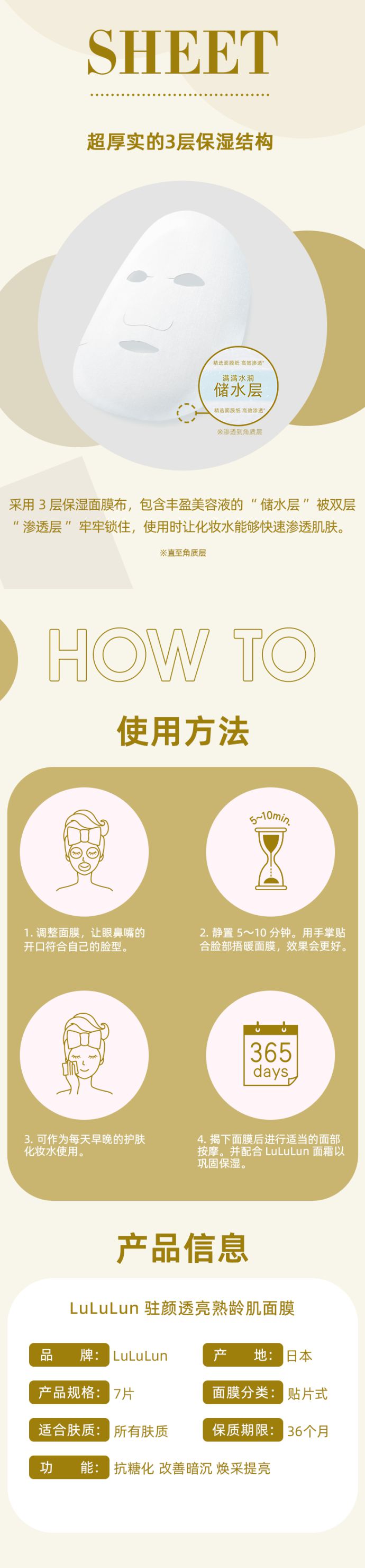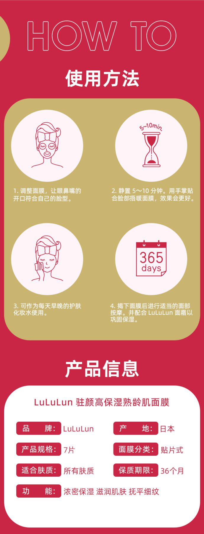 LuLuLun驻颜高保湿面膜抗老化日本面膜深层补水滋润7片装