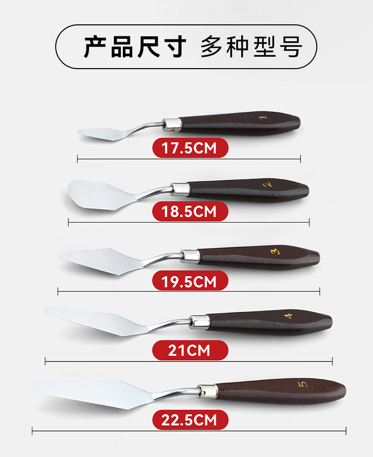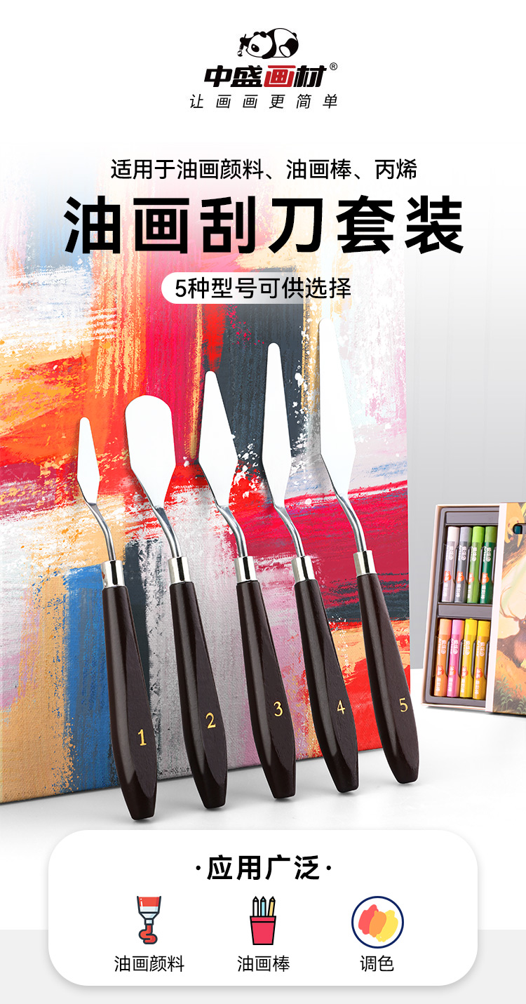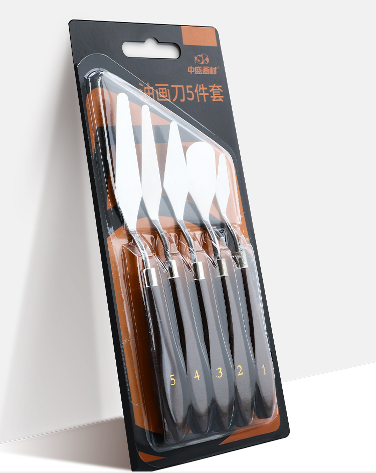 中盛画材 5支装油画棒刮刀颜料调色刀油画刀水粉画刀丙烯美术用品挑刀尖头圆头平头画具画材