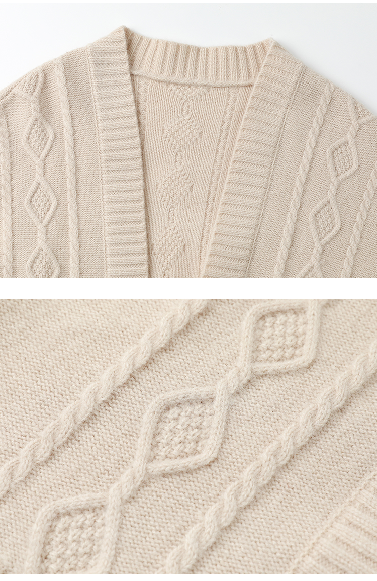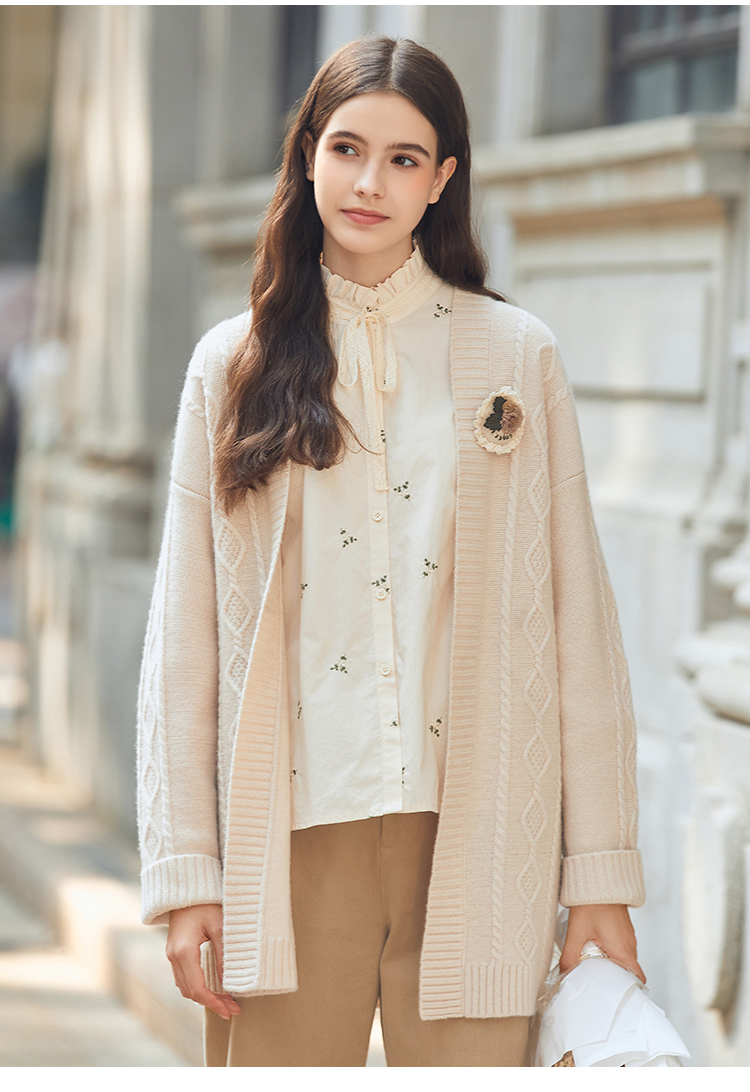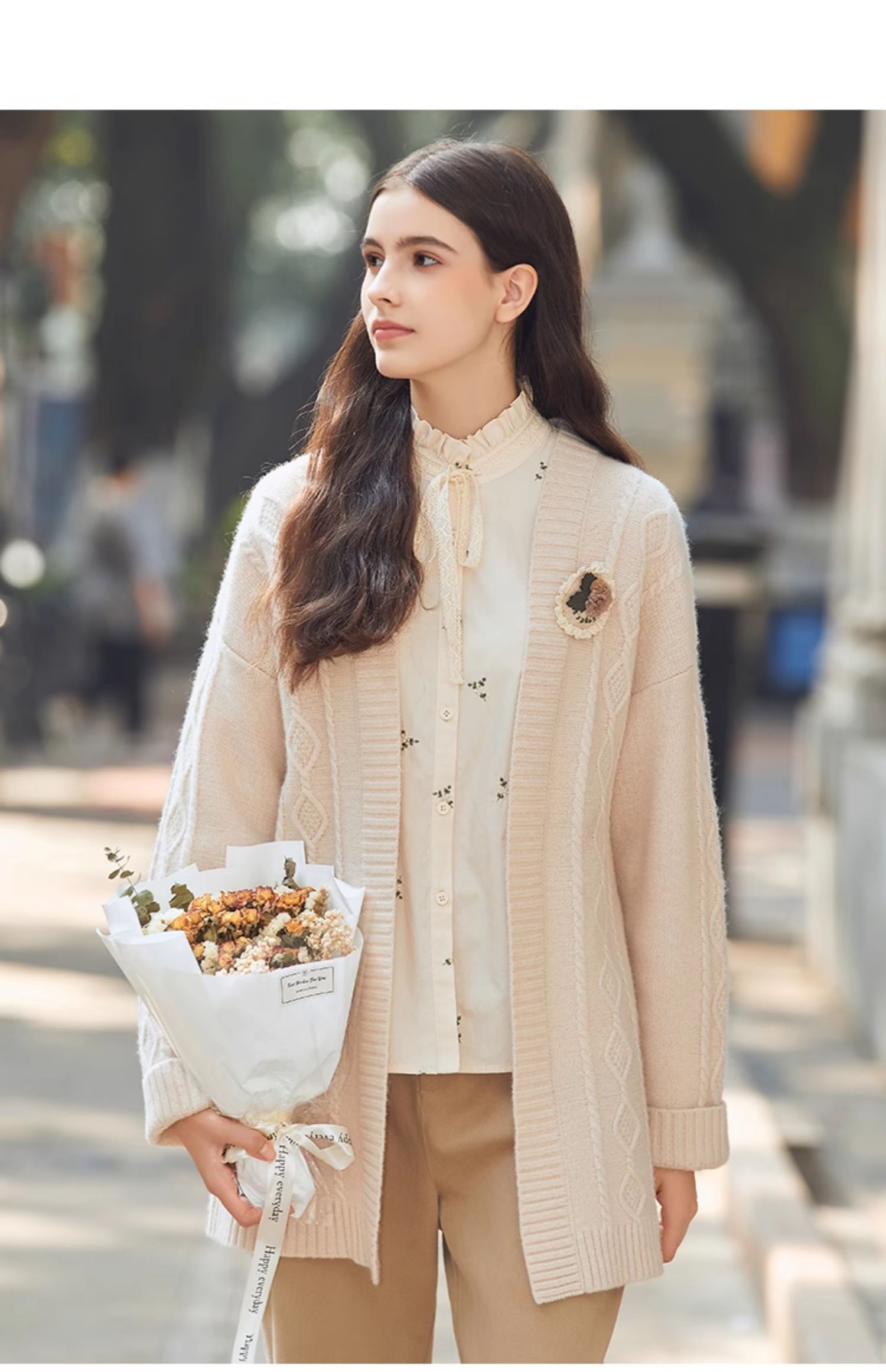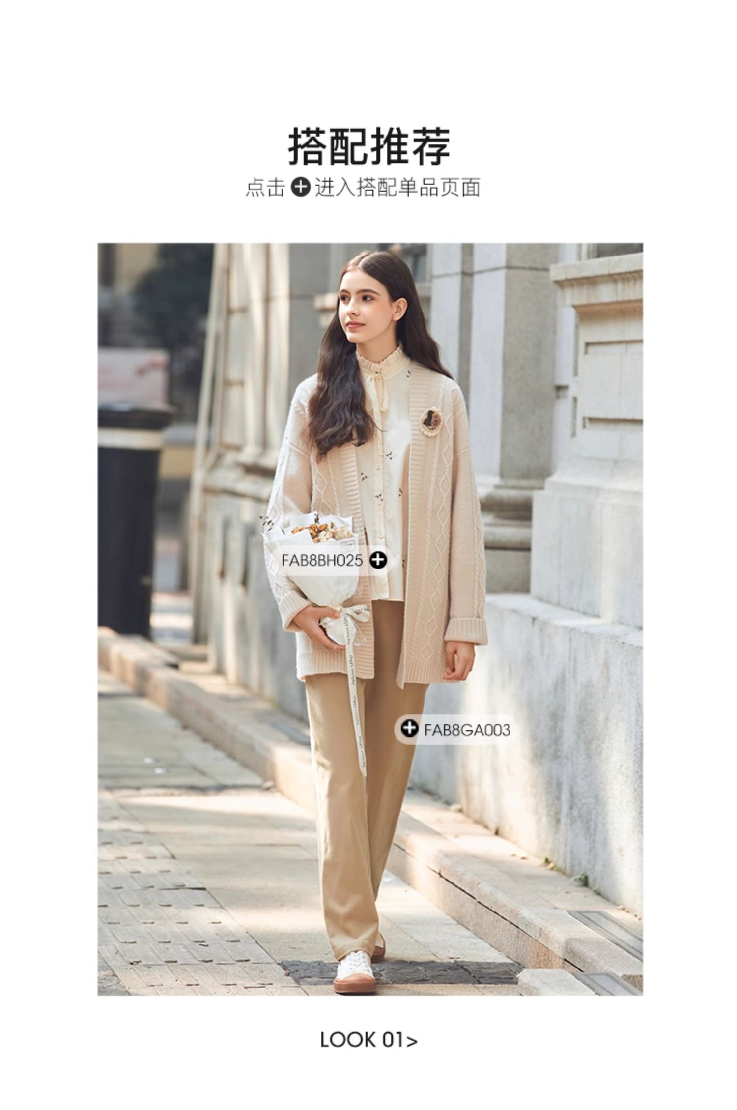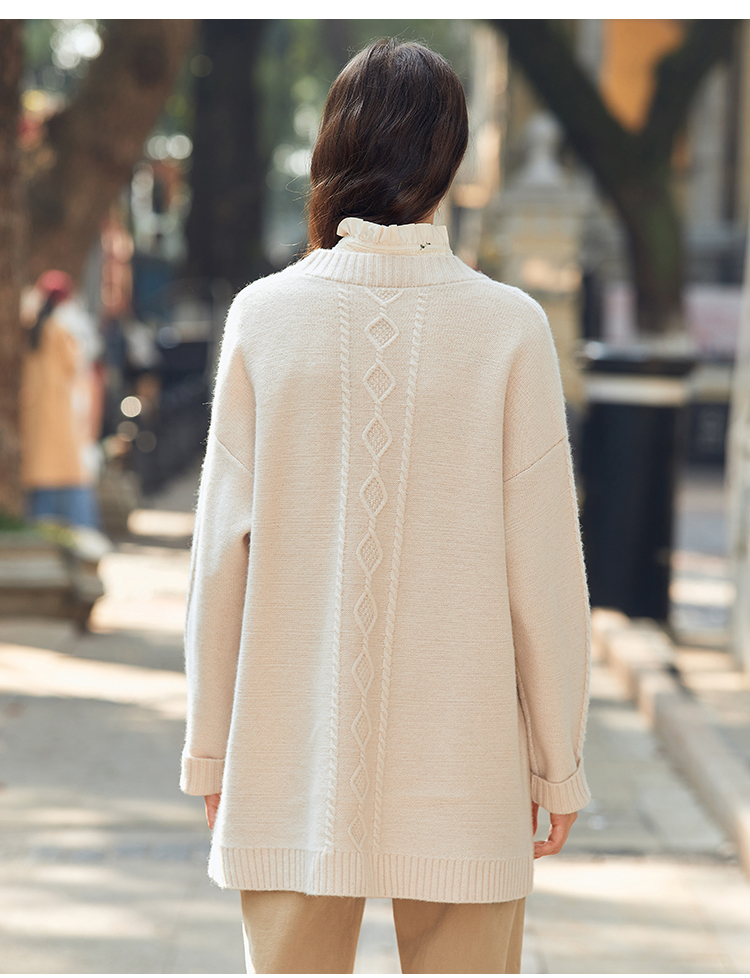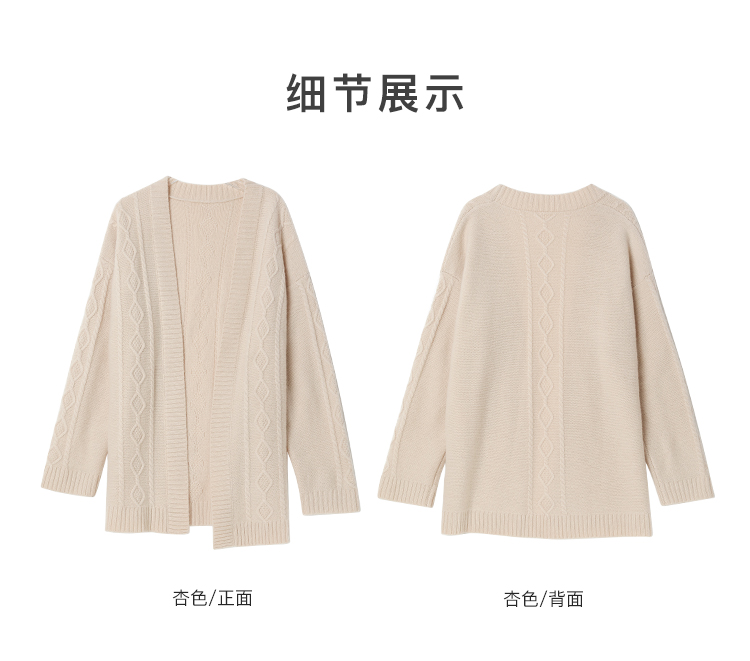 Famecoco范可儿100绵羊毛毛衣开衫外套女冬FAB8DA025