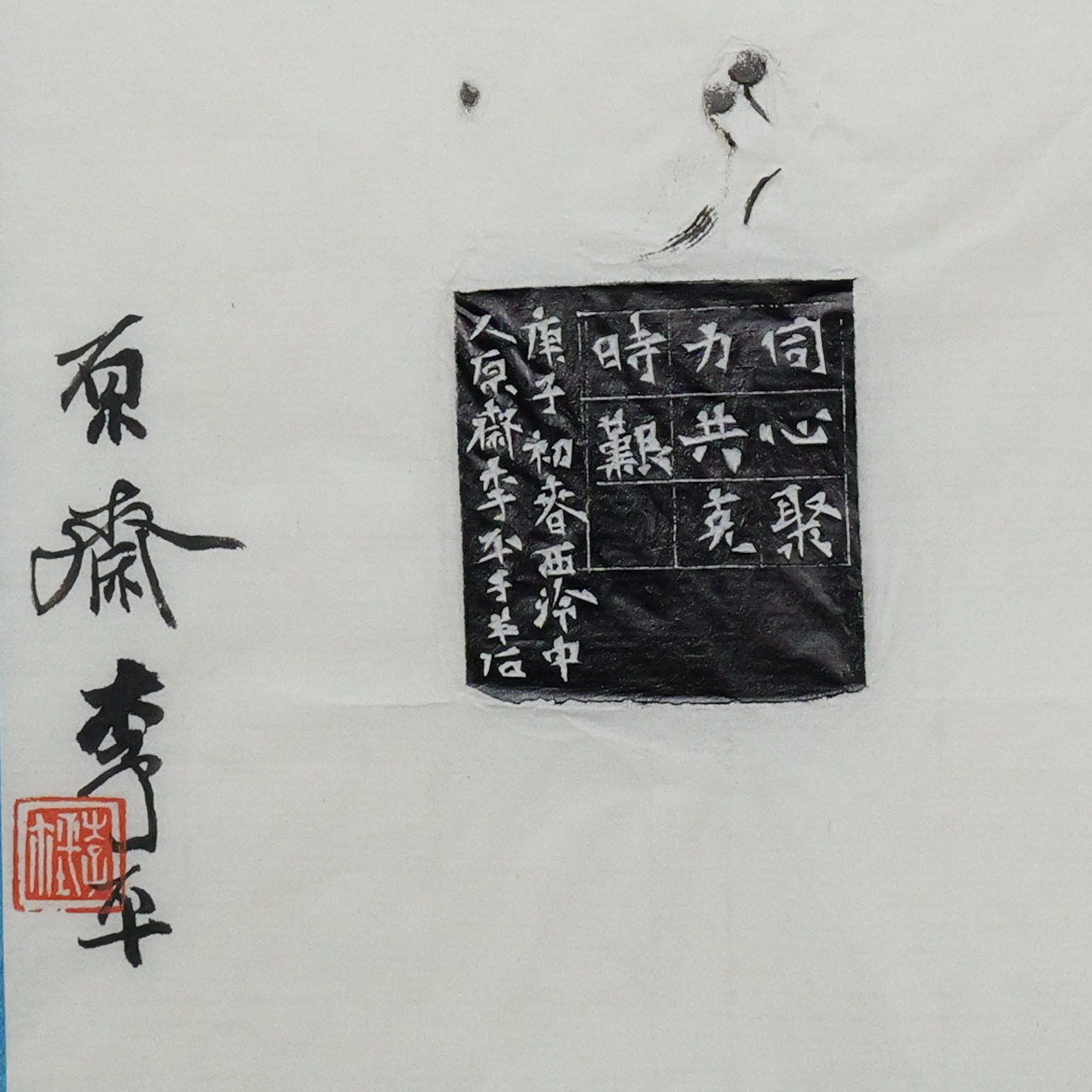 李平丨同心聚力共克时艰 3.5x3.6x7CM 手工篆刻印章作品
