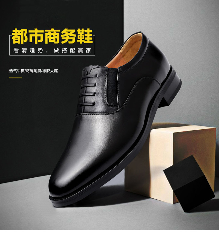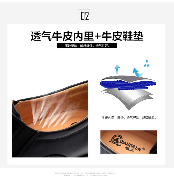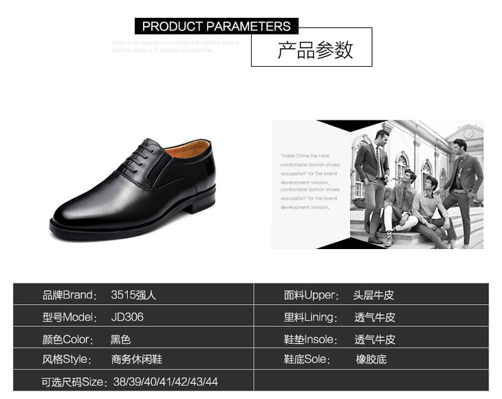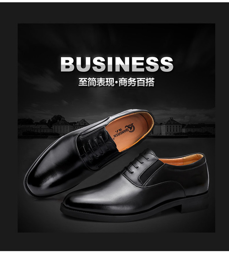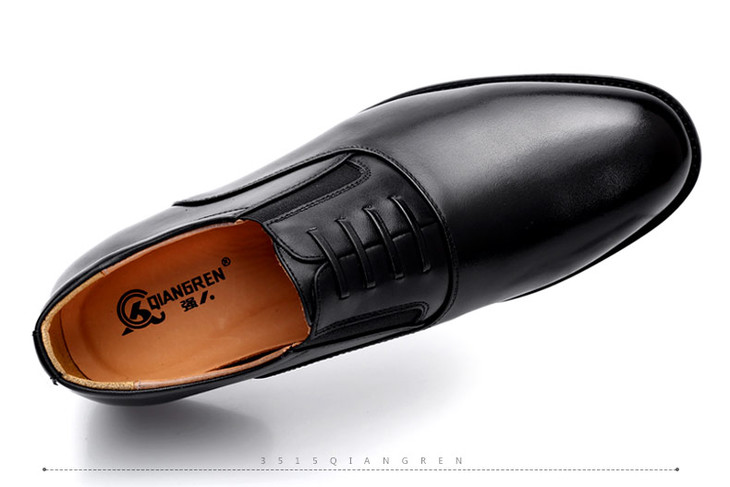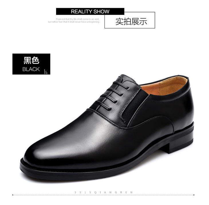 3515强人男鞋小牛皮皮鞋黑色商务正装皮鞋男