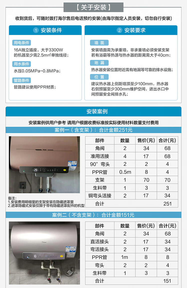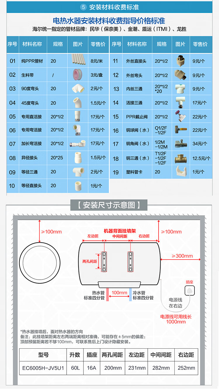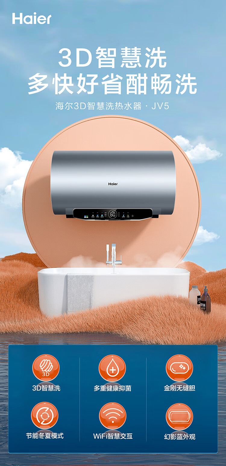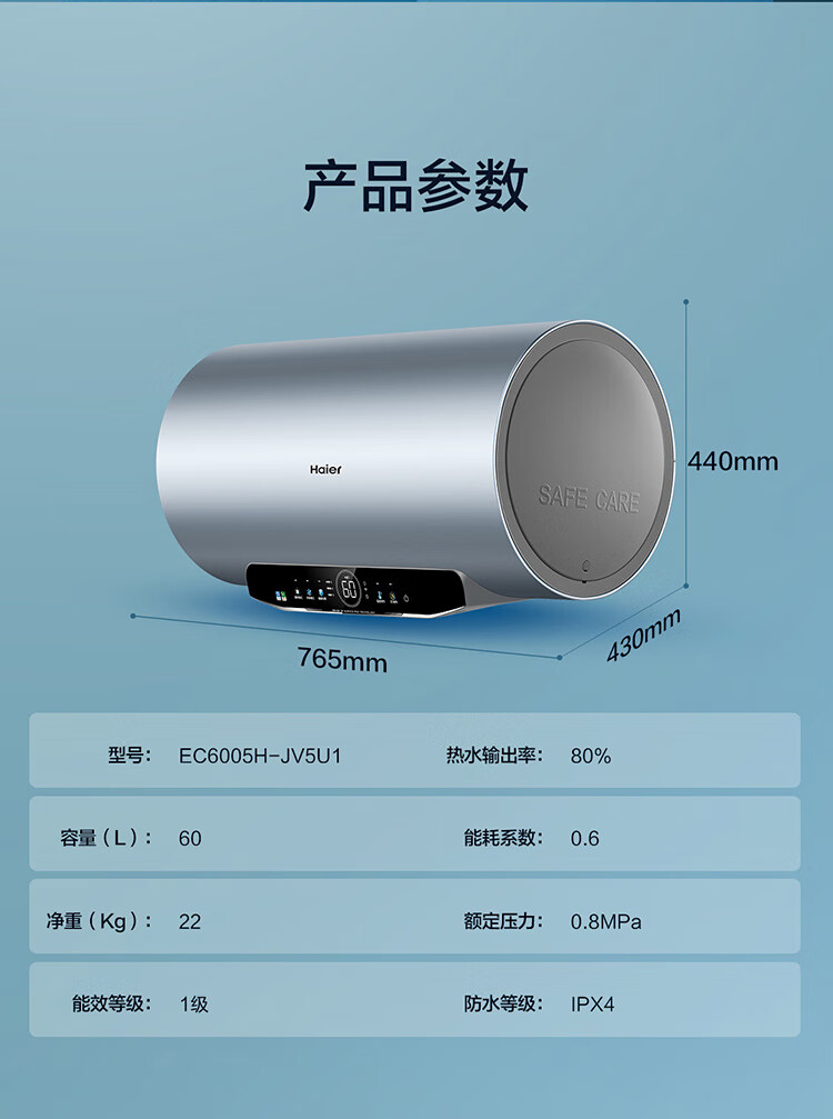 海尔(Haier)60升家用电热水器 3300W大功率速热 EC6005H-JV5U1 *