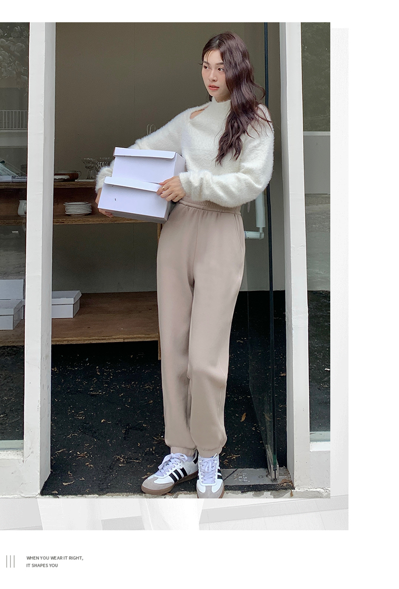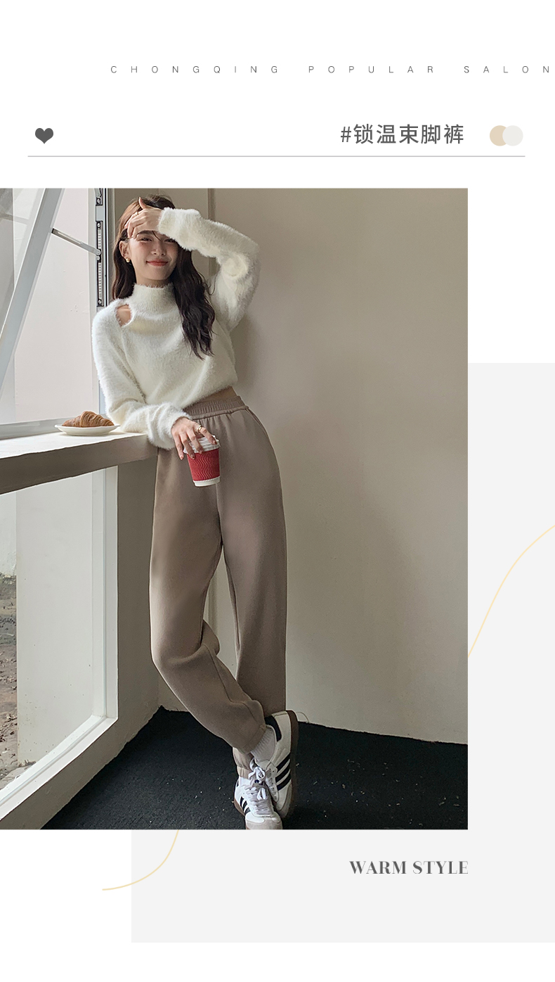 【2024冬季】加厚锁温束脚裤女 高腰插口袋显高显瘦简约百搭垂感直筒裤 商品图0