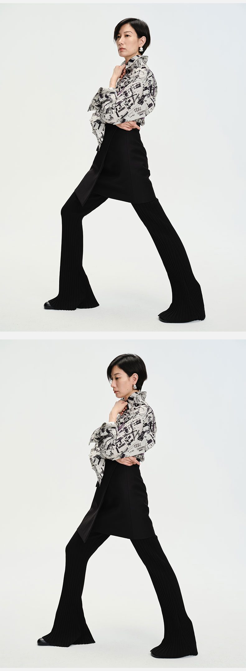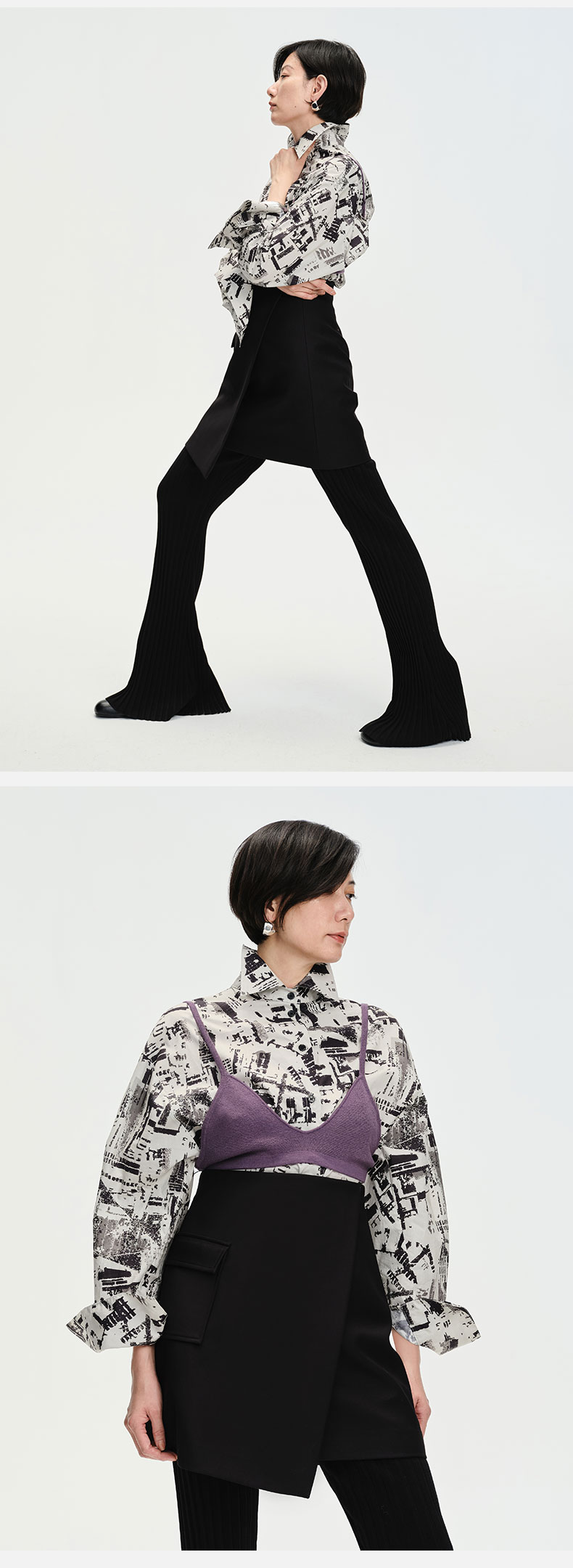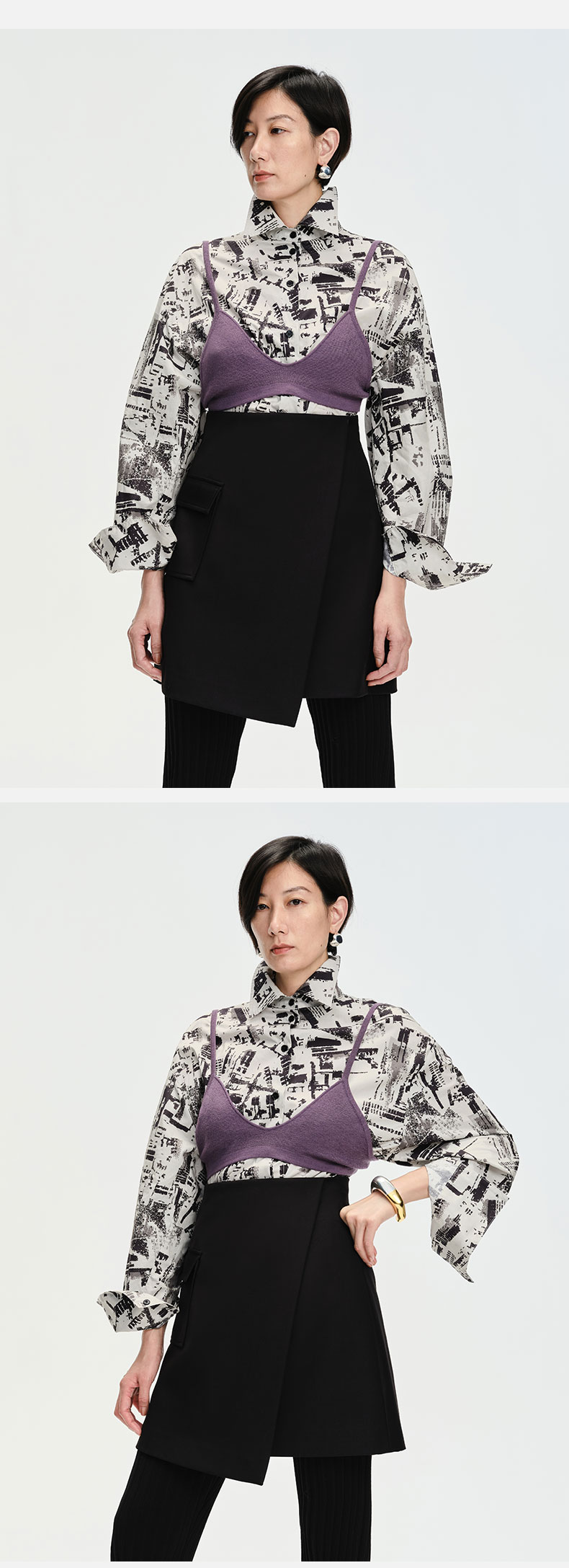 HIDEMI “我们做印花”无尽夏 印花长绒棉套装 可拆卸系带短袖衬衫/不对称半身裙