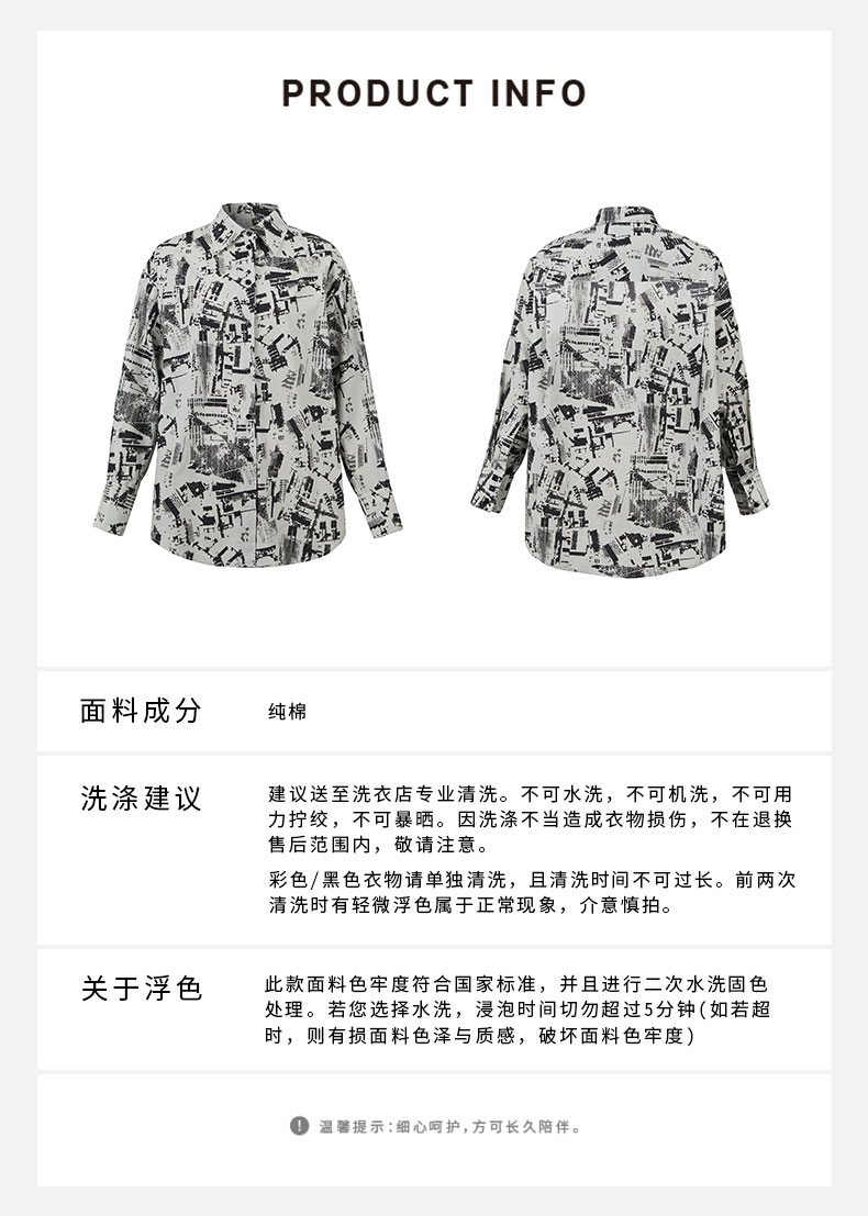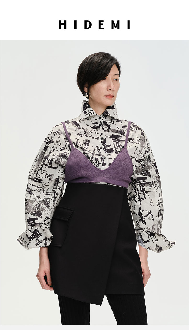HIDEMI “我们做印花”城市剪影水洗棉廓形衬衫
