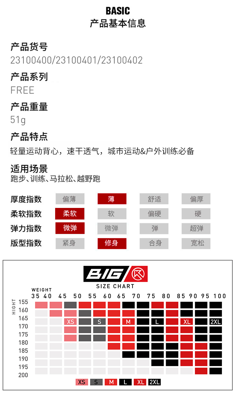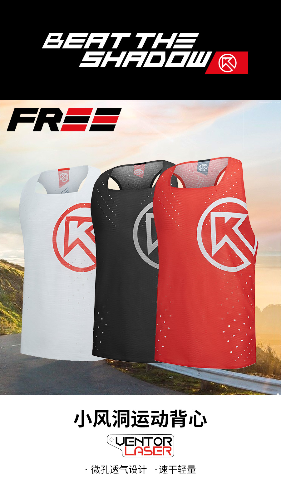 BigK 大K FREE 纯色风洞运动背心 透气速干 马拉松 户外运动