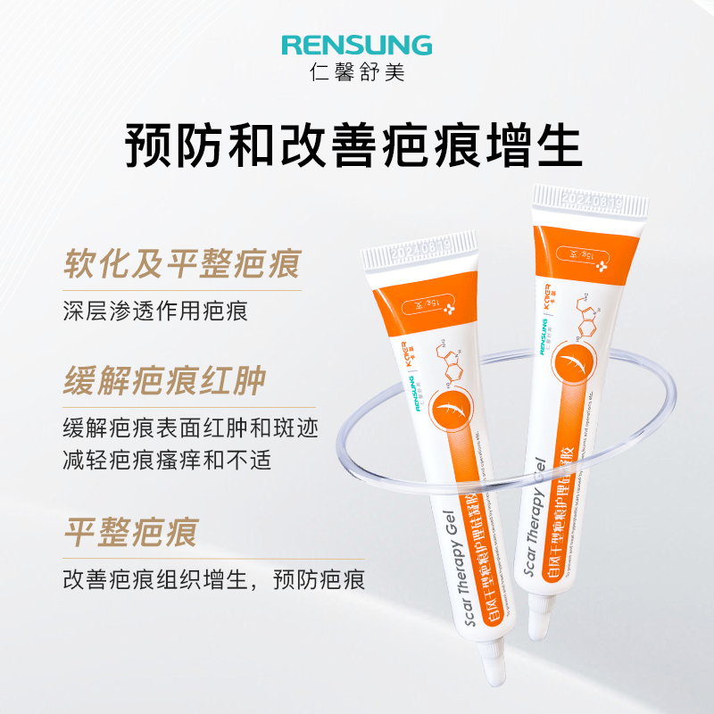 RENSUNG仁馨舒美疤痕护理硅凝胶(两种包装随机发货),仁馨舒美疤痕膏,预防和改善疤痕增生 ✅手术疤、增生疤、烧烫摔伤、蚊虫叮咬、痤疮痘痕~都能轻松应对~