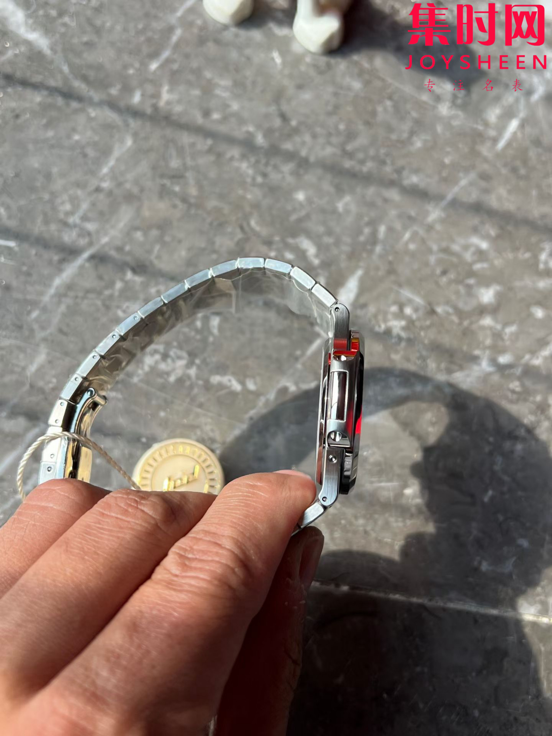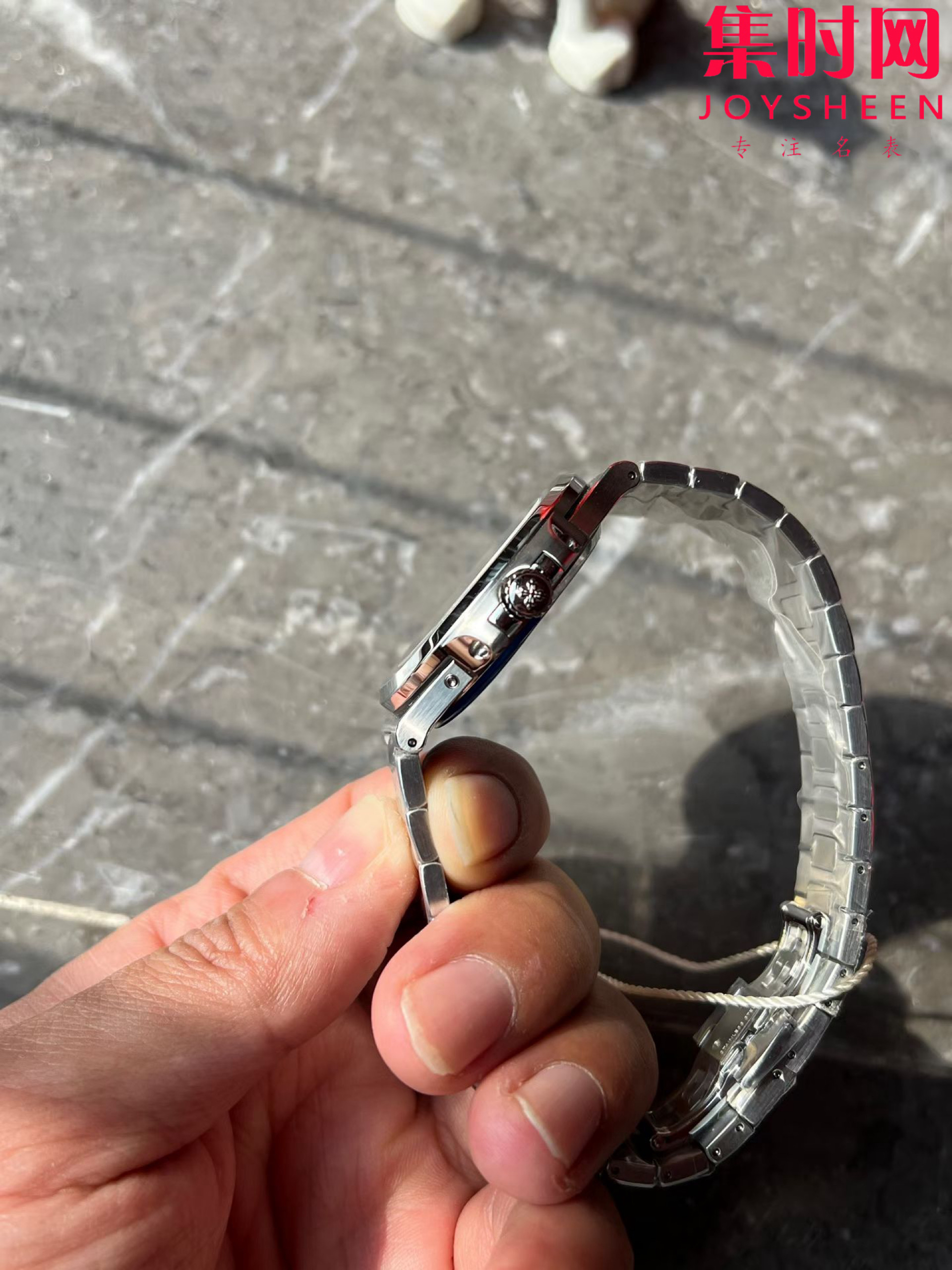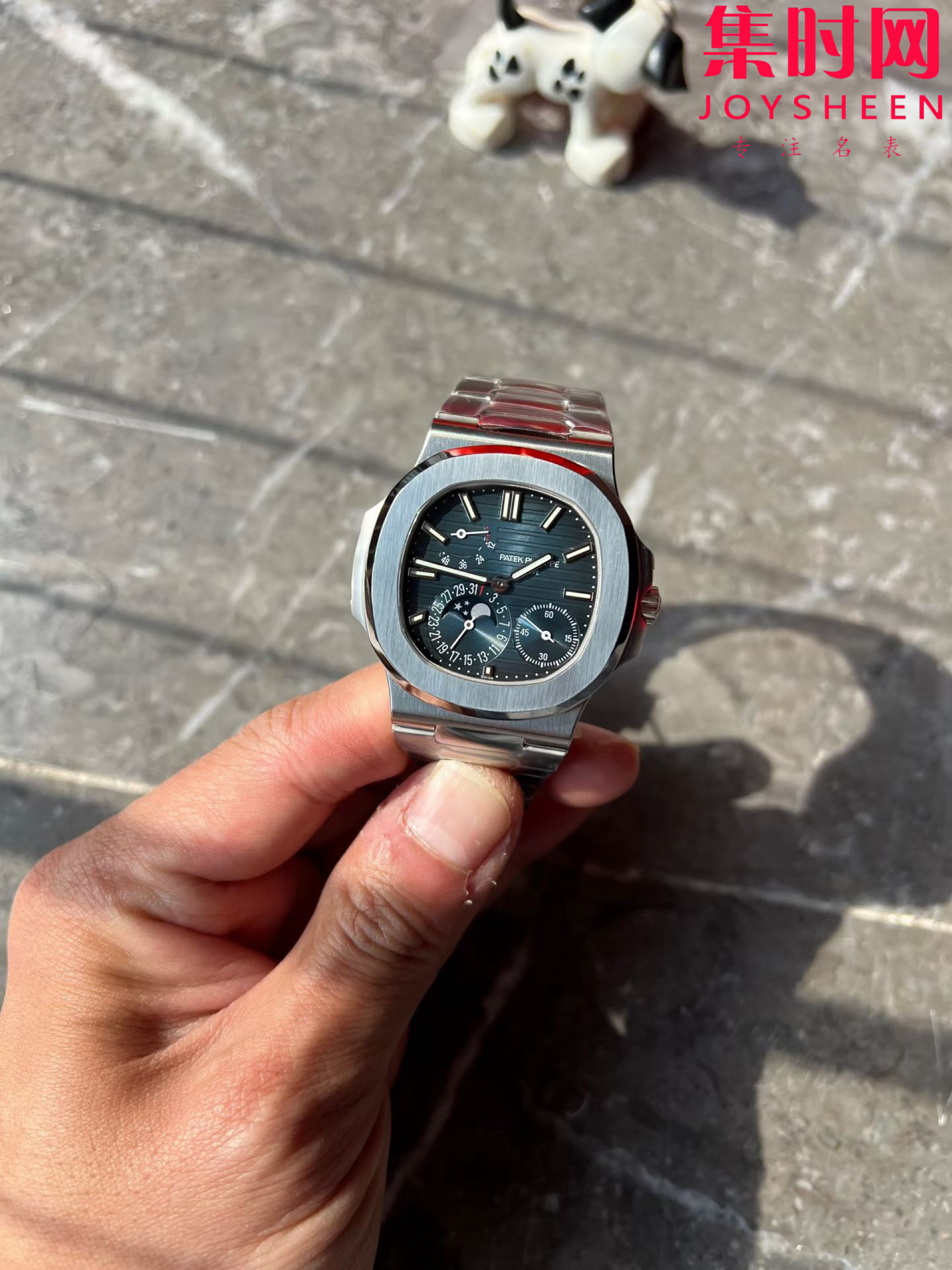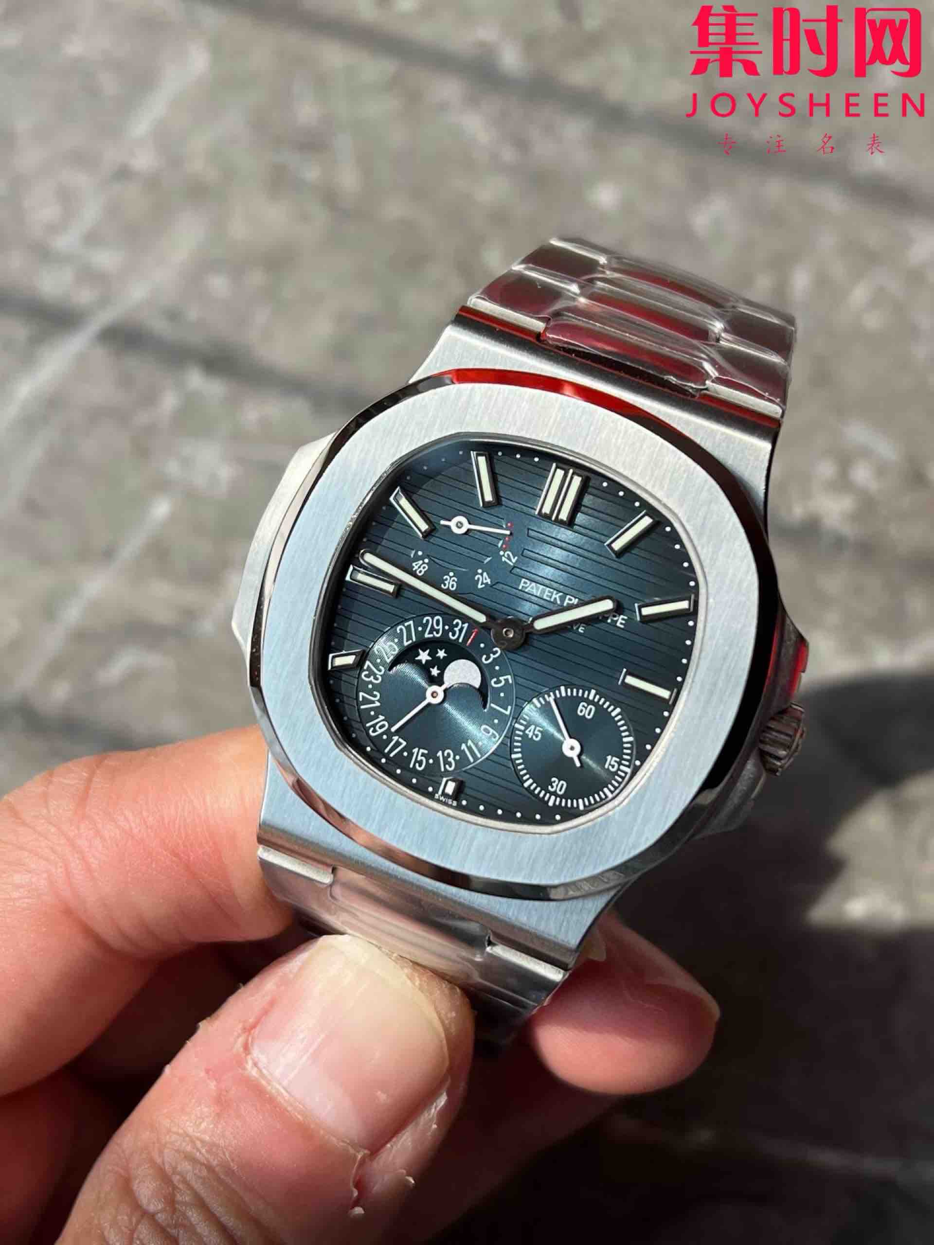 PPF潜心三年 真“芯”之作!百达翡丽PP5712GR全新升级V3版,巅峰出道了!这是真正具有里程碑意义的超级一体机芯Cal.240 PS IRM C LU。全机芯零件数265个,平面游丝,21600每小时振荡次数 Gyromax带调节砝码的摆轮,稳定无误差。(不同于市面上现有的假机芯盖甲板,假珍珠陀) 全新修正的不锈钢表带,铰链部分根据真正的百达翡丽鹦鹉螺不锈钢表带拆解开发,和正品一致的贴合效果,逆袭市面上所有副本,铰链开合角度和正品一致,锁毕声音和正品相同。而PPF独家的“蓝魅”面无限接近接近原版,更是傲视群雄!
