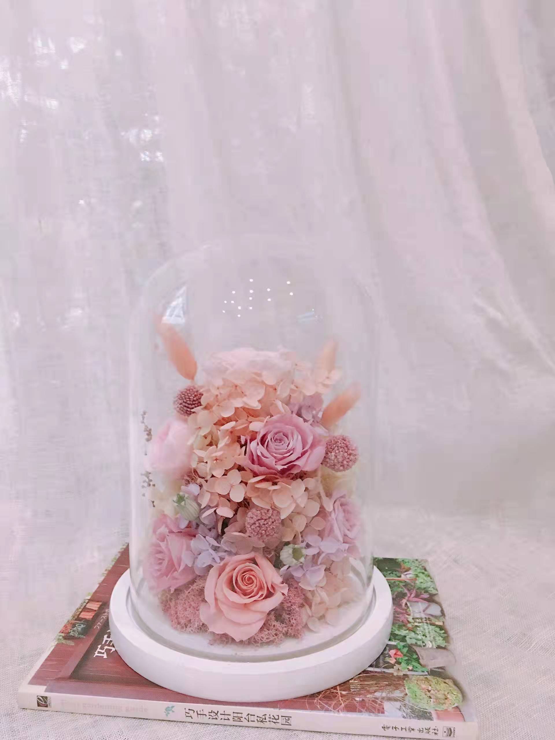 白色底座暂时缺货,目前配送为原木底座 【顺丰快递配送/跑腿配送】每月花礼永生花观赏瓶【高约19-20CM(含底座),底座直径约14CM】