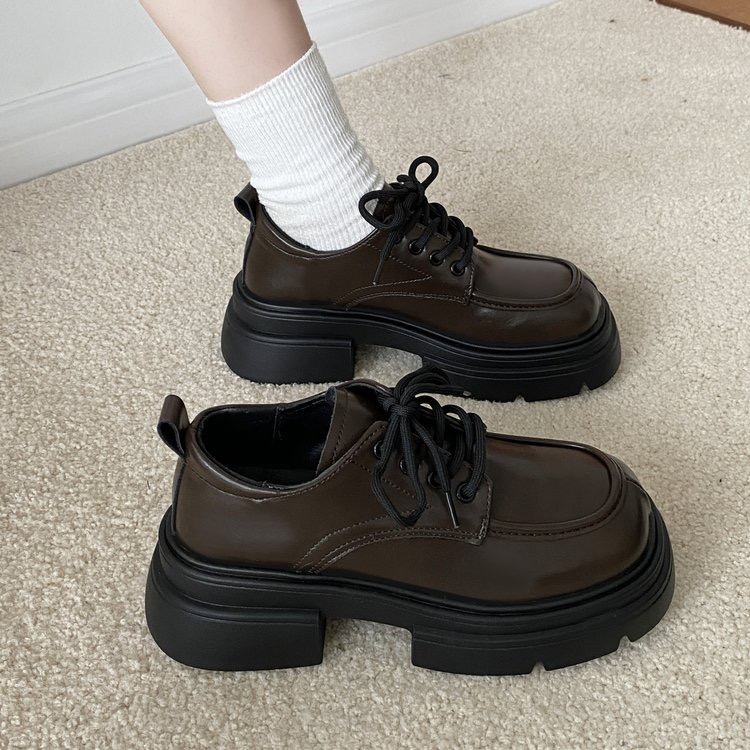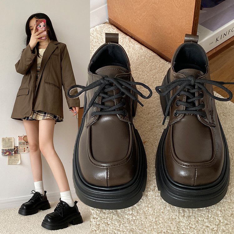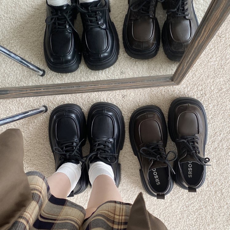 【YW】无忧购系带小皮鞋百搭森系厚底增高单鞋乐福鞋(截单后7天发货)