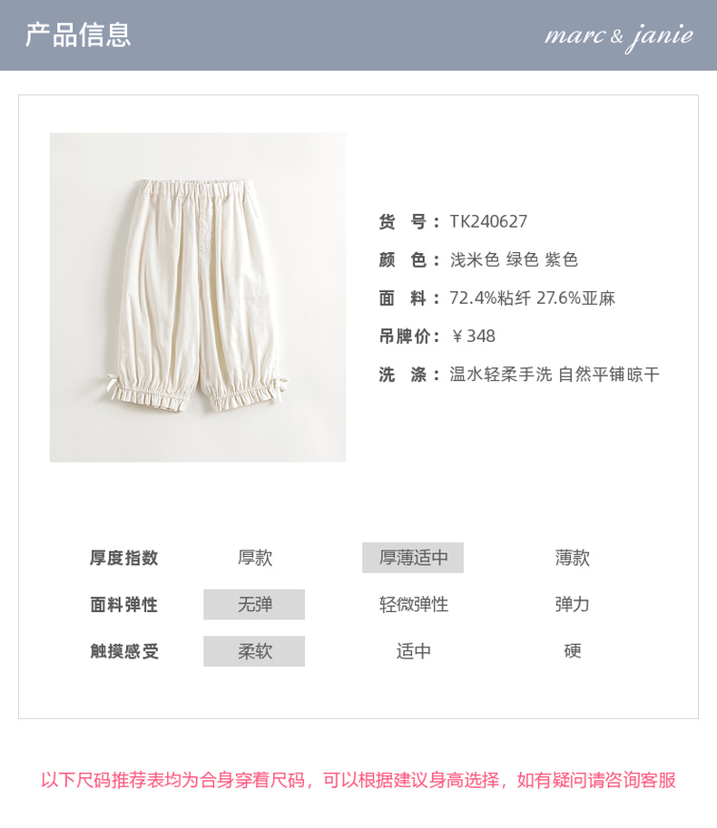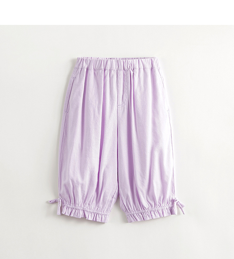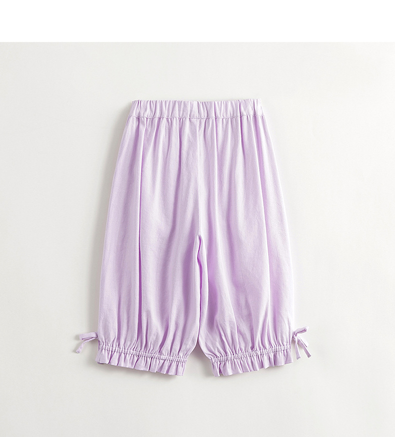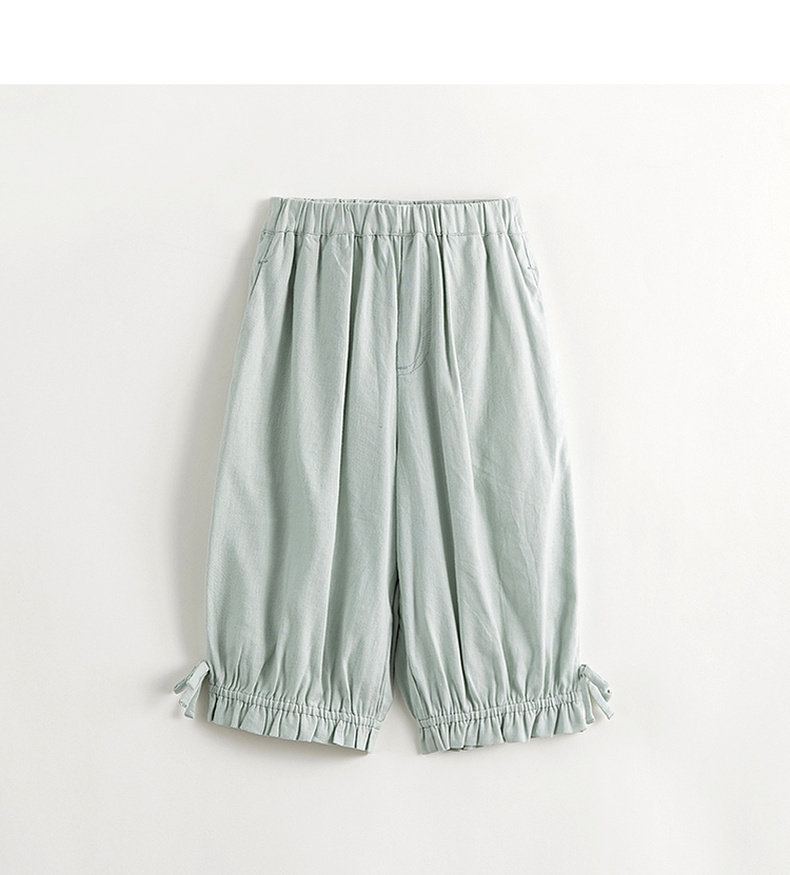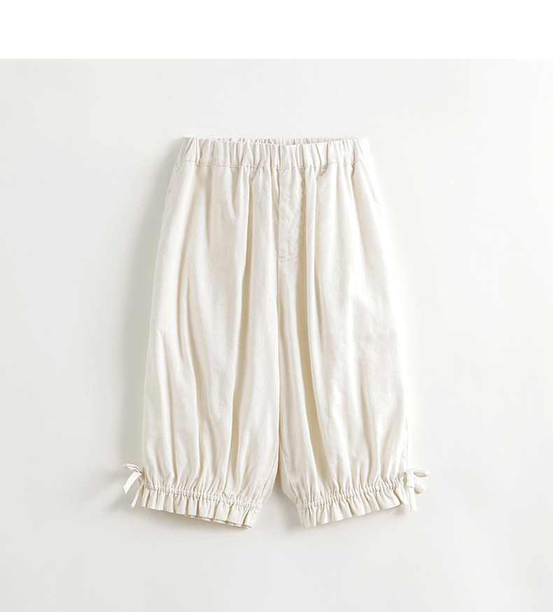 马克珍妮女童清凉亚麻蝴蝶结宽松九分裤儿童防蚊裤夏装新款240627