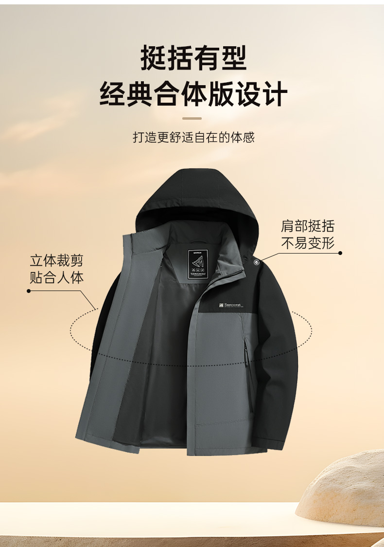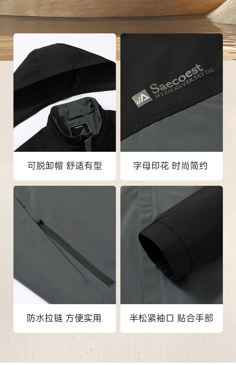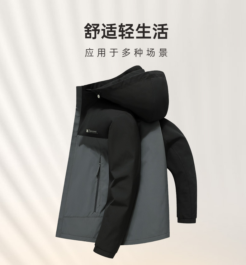【易打理】圣得西2025秋冬新款夹克连帽外套男休闲户外登山服可拆卸