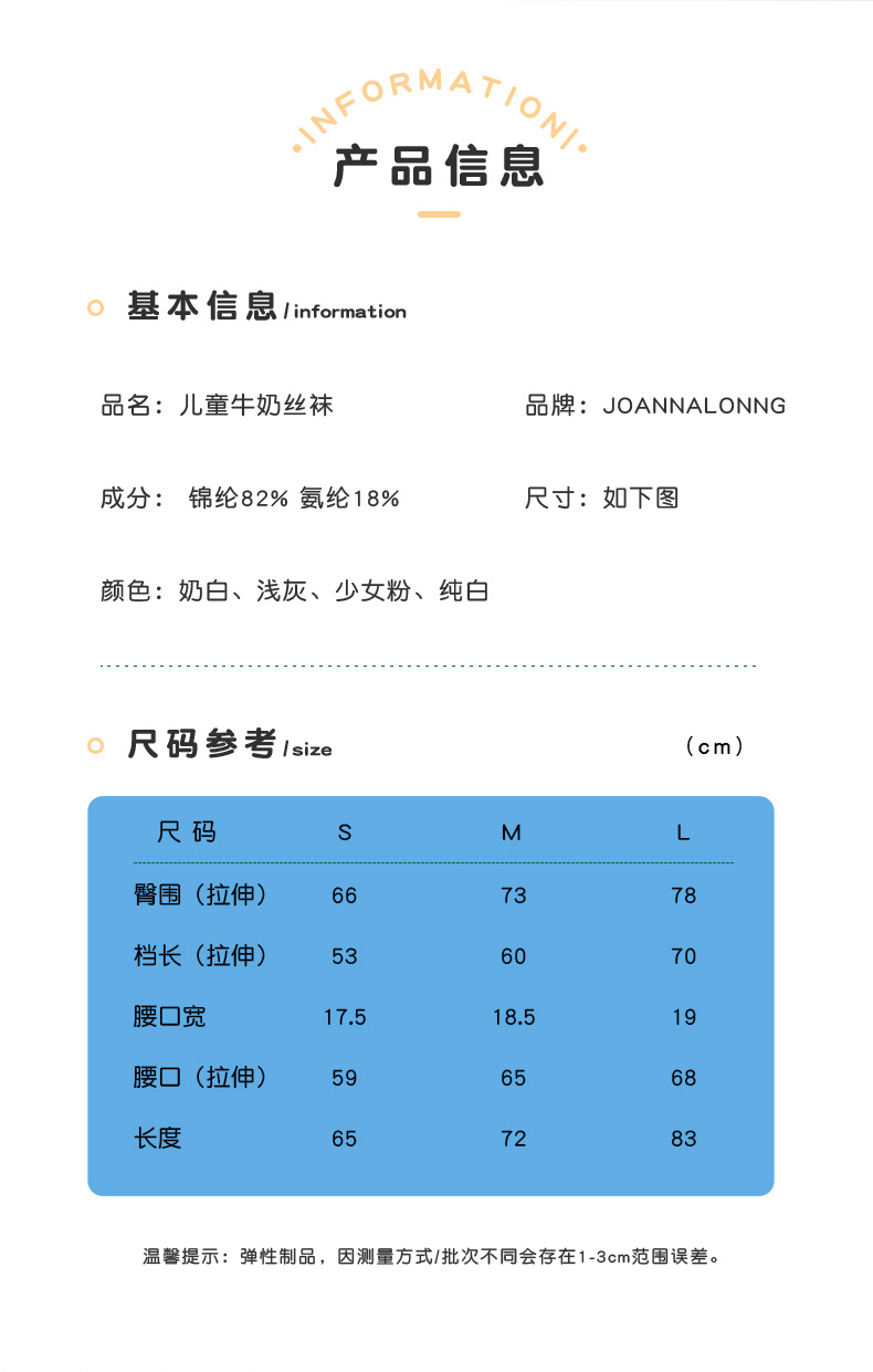 JOANNALONNG Kid's 春夏儿童A类天鹅绒牛奶薄型糖果色舞蹈连裤袜