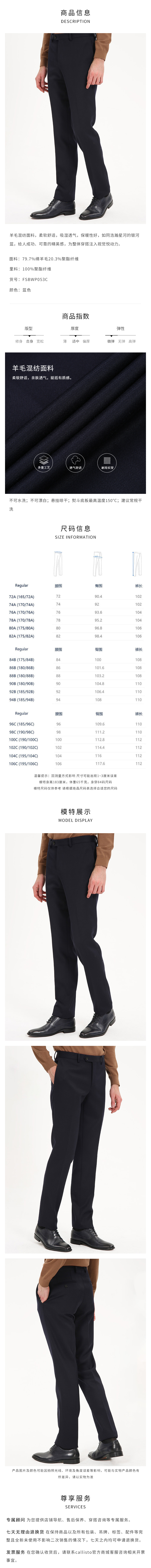 callisto银河蓝羊毛混纺西裤 FSBWP053C BL