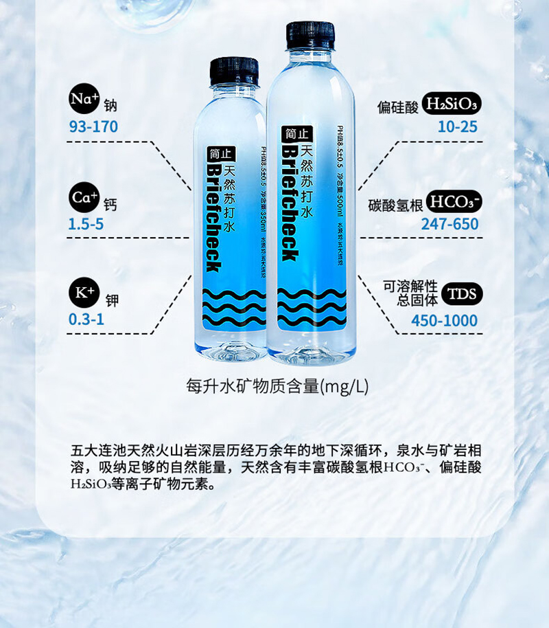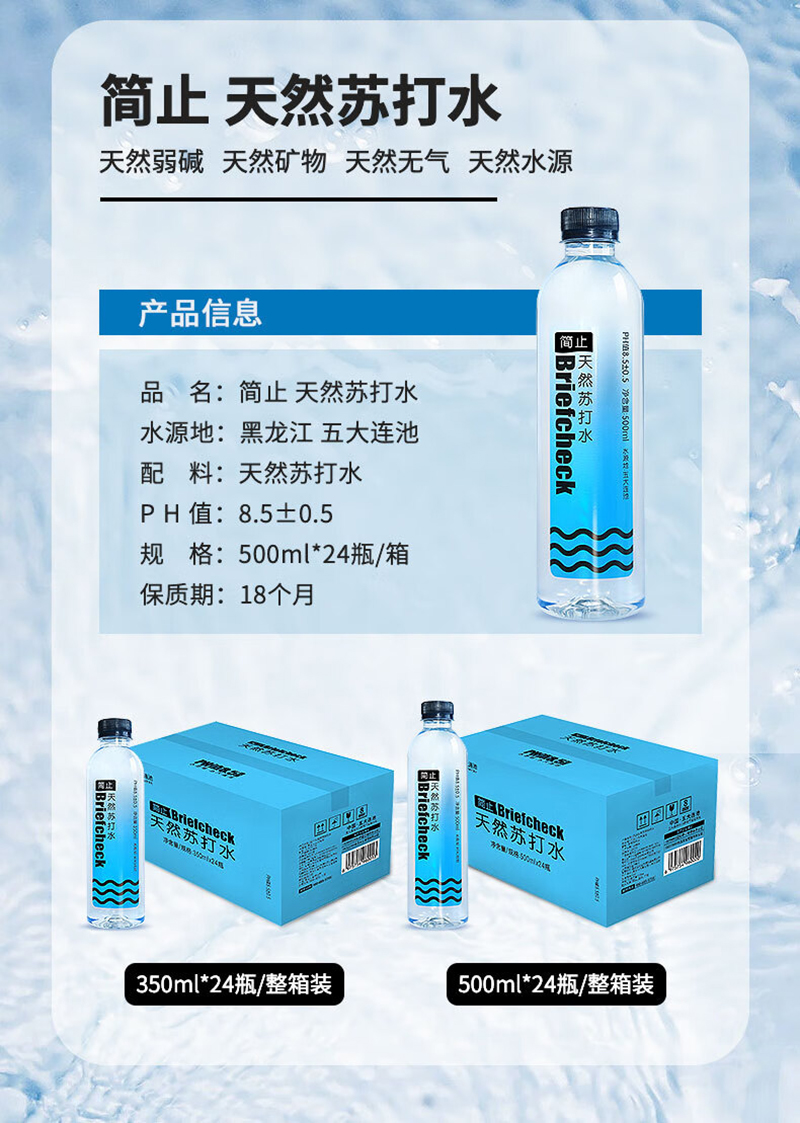 简止(Briefcheck)饮用天然苏打水 无气饮用水 500ml*24瓶